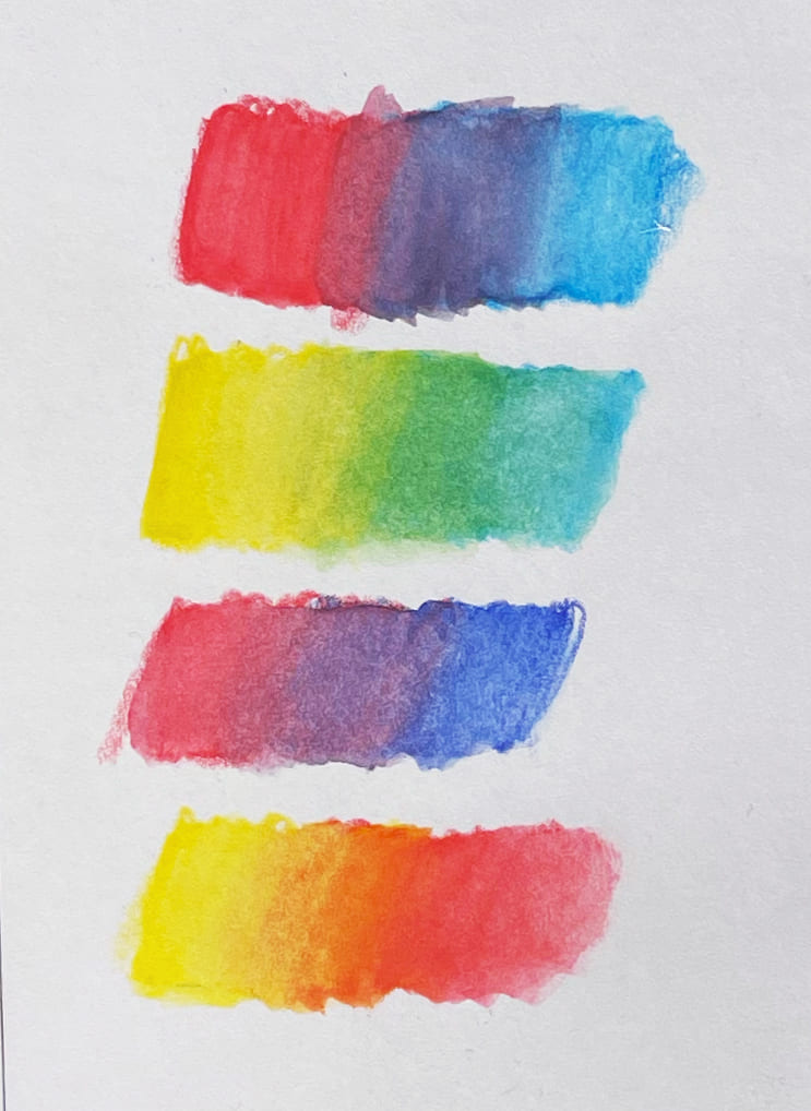 Как можно заметить, при размытии цвет становится светлее. Таким образом, если комбинировать в рисунке обычную (без добавления воды) и акварельную вариации, оттенков получится в два раза больше.