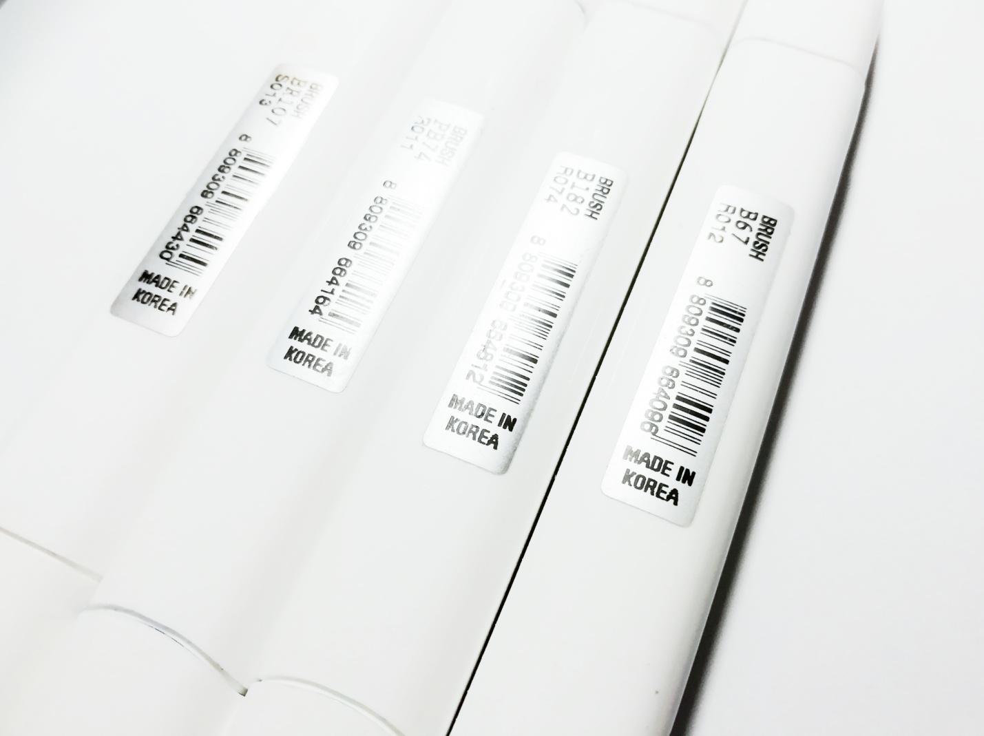 С обратной стороны маркеров — наклейка с номером оттенка, штрих-кодом и надписью Made in Korea. Если будет мешать или мозолить глаз, её можно легко отклеить, оставив идеальную белую гладь корпуса.