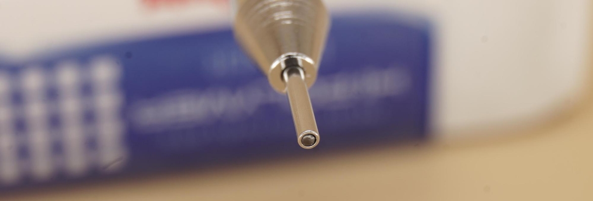 Она перемещается по тонкой внешней резьбе на конце корпуса со стороны пишущего узла. Осевое перемещение грип-секции при вращении по резьбе и приводит к «выдвижению» или «задвиганию» направляющей трубки.