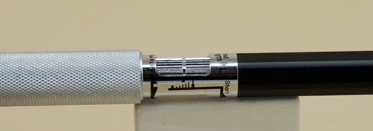 Регулируются у него как длина направляющей трубки, так и величина подачи грифеля. Первое влияет на эргономику, а последнее может понадобиться для настройки карандаша на грифели разной твёрдости.
