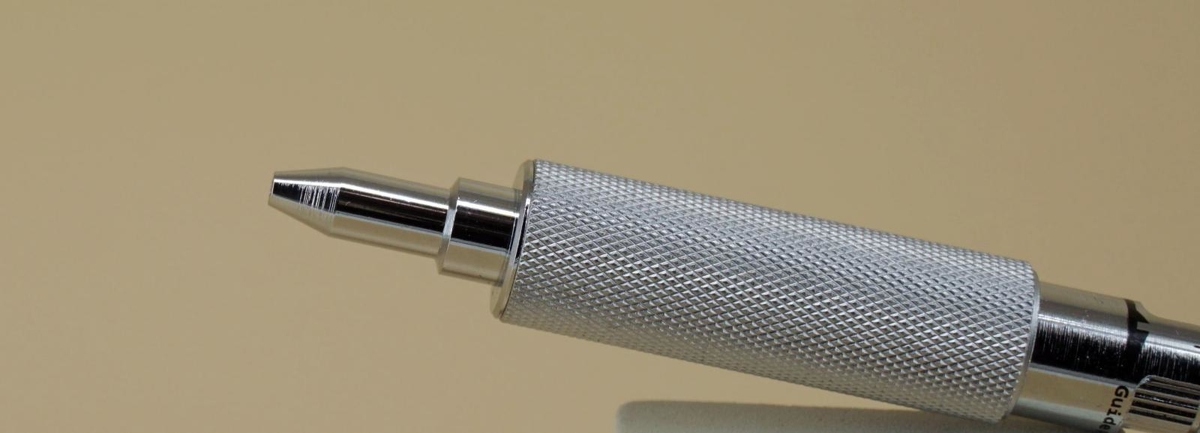 Когда берёшь инструмент в руку, сразу понимаешь, что металла производитель не пожалел: он ощущается очень тяжёлым, да таким и является — 27,6 г. После него почти полностью металлический UNI KuruToga Metal, который у меня тоже есть, кажется обычным. Думаю, этот рекорд веса в моей коллекции нескоро будет побит.