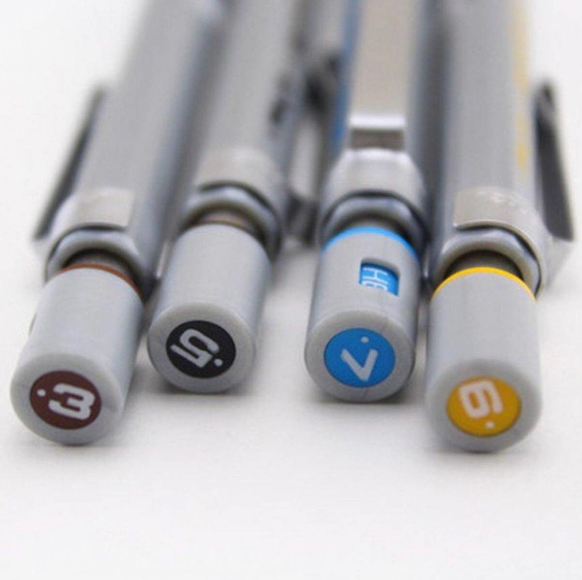 Ах да, ещё же варианты под грифель! В случае Pentel GraphGear 500 это 0,3, 0,5, 0,7 и 0,9 мм (в обзорах видел и 0,4 мм, но в продаже такой не попадался). У каждого свой цвет надписей и некоторых элементов на корпусе.