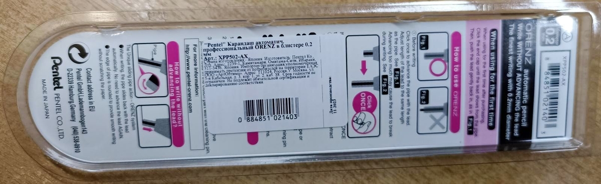 Упакован Pentel Orenz 0.2 был вполне традиционно — в блистер.