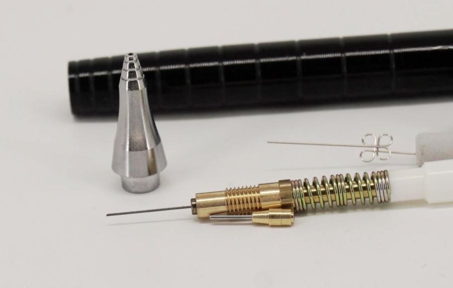 Вот она в сравнении с направляющей грифеля 0,5 мм Pilot The Shaker: