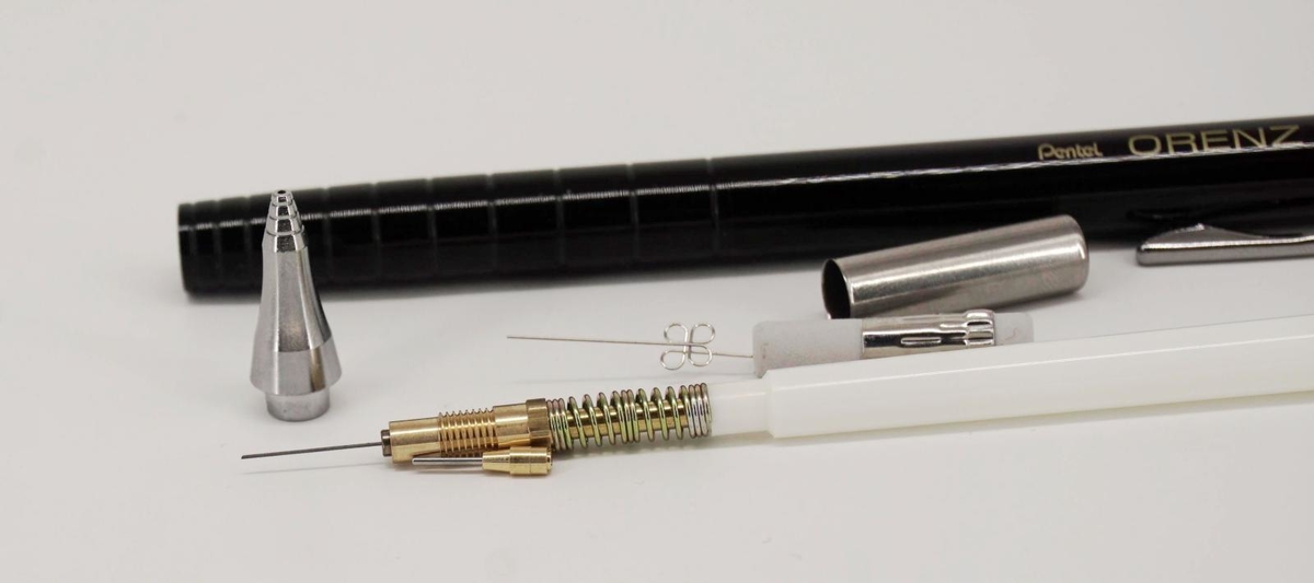 Pentel Orenz 0.2 легко разбирается. Качество изготовления всех деталей очень высокое, экономии на материалах не заметил.