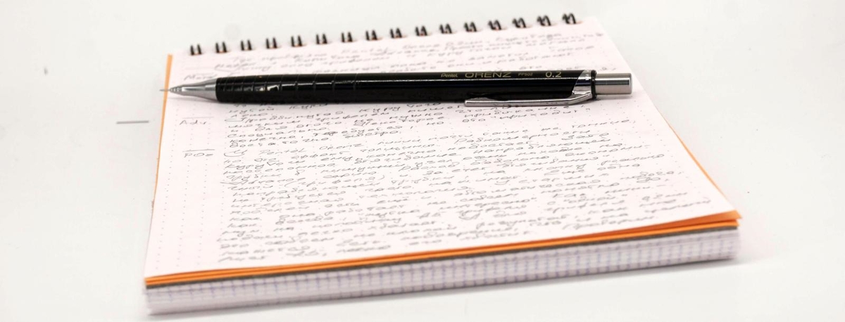Проверяю, на какой объём рукописного текста хватит грифеля после одного нажатия кнопки.