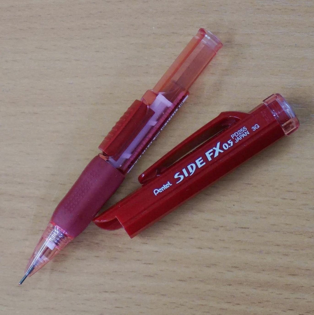 Pentel Side FX — недорогой, но качественный карандаш. Металлическая неубираемая трубка в пластиковом конусе пишущего узла — дань бюджетности и не кажется слишком надёжной при транспортировке, скажем, в кармане костюма… Но всё же в инструменте не чувствуется тотальной экономии на материалах, он выглядит достойно и ощущается вполне крепким.
