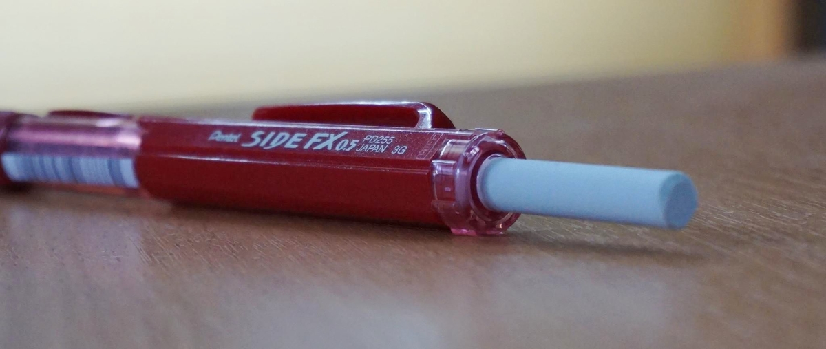 Я уже рассказывал о механическом карандаше с подачей грифеля по нажатию боковой кнопки Pentel Techniclick; по горячим следам после его покупки мне порекомендовали ещё несколько подобных вариантов. Среди них Pentel Side FX визуально понравился больше всех, к тому же у него был заявлен продвинутый — винтовой — механизм выдвижения ластика. Заинтересовался, решил приобрести.
