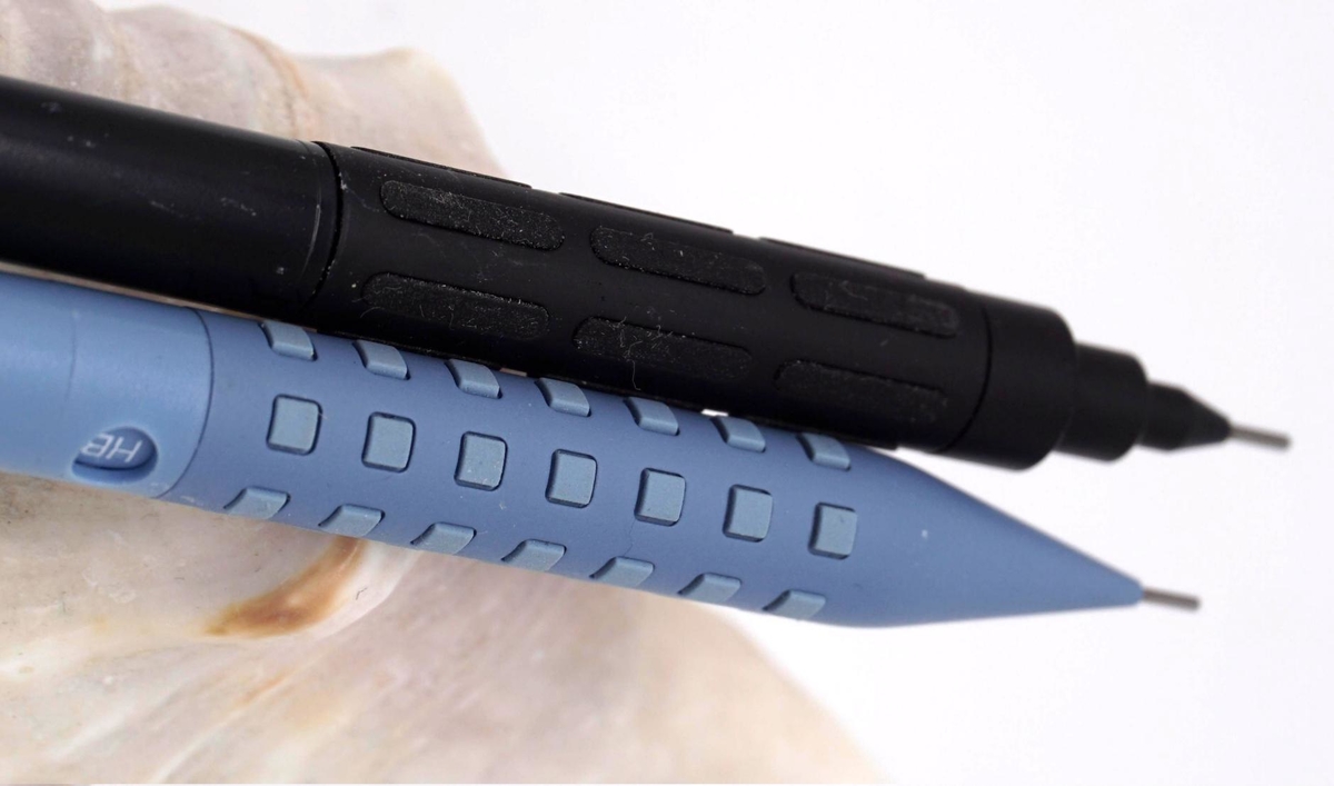 Судя по информации на сайте компании Pentel, эта модель выпускается с 1987 года, то есть на момент 2025-го — уже 38 лет. Создана она на базе Graph 1000 «путём адаптации технологии к обычным механическим карандашам»; не зря у обеих резиновые подушечки на грип-секции.
