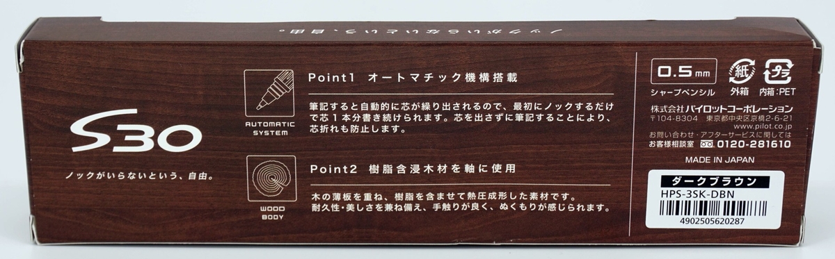 S30 несколько выбивается из линейки — прежде всего потому, что он не чертёжный, а предназначен для письма. По сути, этот карандаш — результат «скрещивания» S20 и выдающегося Pilot Automac, чей механизм унаследовал. Последний перестали выпускать сразу после появления 30-го — в 2021 году.