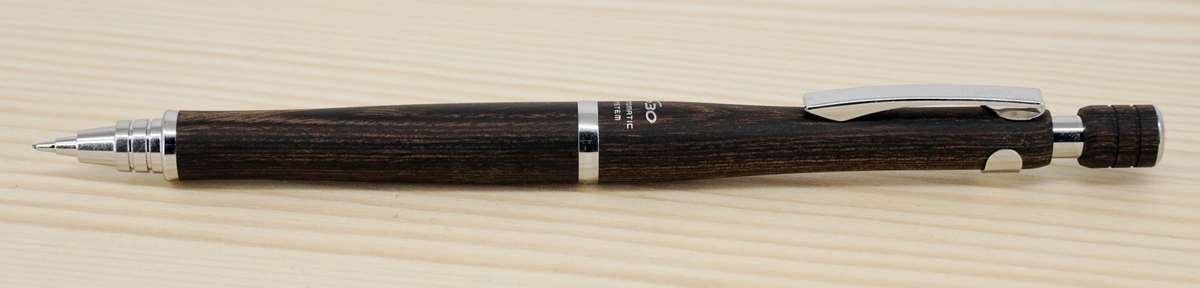 А вот и герой обзора — новый флагман в деревянном корпусе, только под грифели 0,5 мм, с их автоматической подачей. Есть четыре варианта дерева: чёрное, тёмно-красное, тёмно-коричневое (мой выбор) и светло-коричневое.