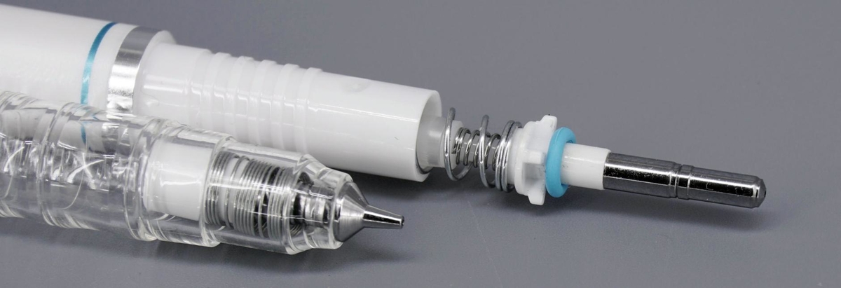 «Объединив две пружины, мы позволили металлическим частям выдвигаться и защищаться от диагонального давления пера, что до сих пор было затруднительно. Кроме того, мы протестировали более ста комбинаций двух пружин, чтобы убедиться, что они выдерживают любые угол и давление, сохраняя при этом ощущение плавности письма».