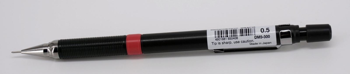 На корпусе серым цветом написано: Zebra Drafix 0.5, quality for creativity («качество для творчества»), DM5-300, Japan 300.