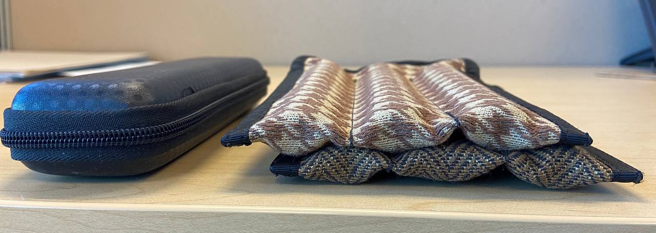 С ручками толщина будет зависеть от того, насколько крупны инструменты, что логично. Но в любом случае компактность сильно не пострадает: на фото ниже наполненный чехол в толщину не более 15 мм.