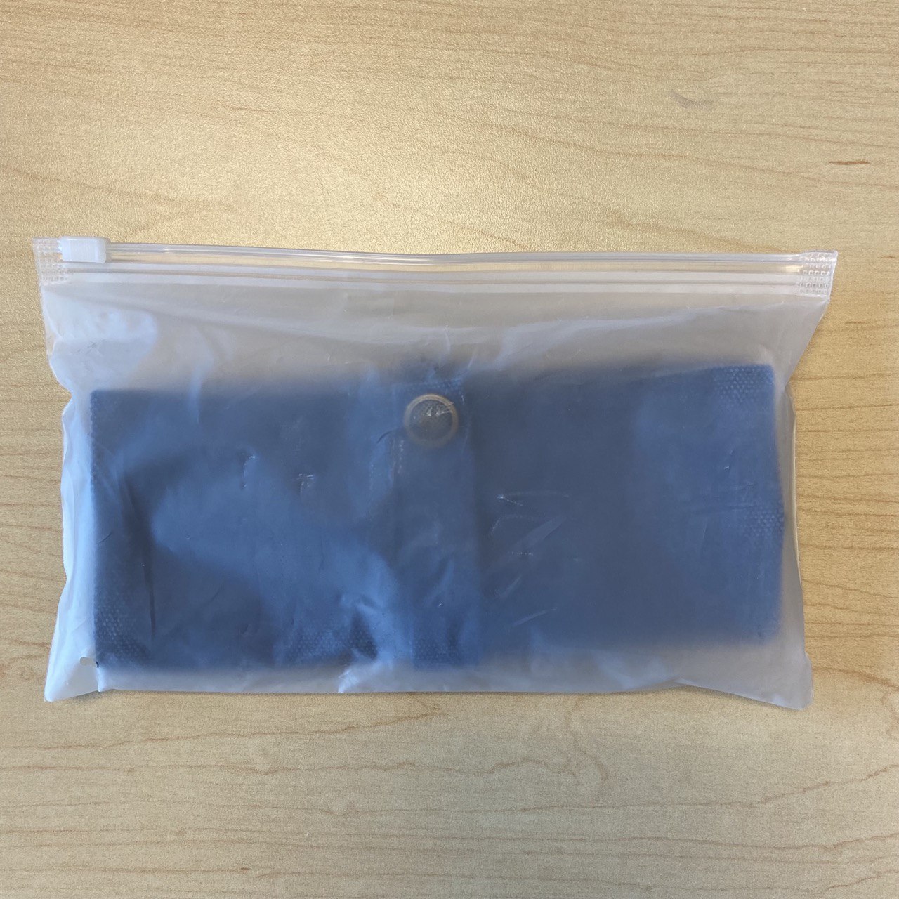 Достаём: по умолчанию сложен втрое, закрыт на металлическую кнопку.