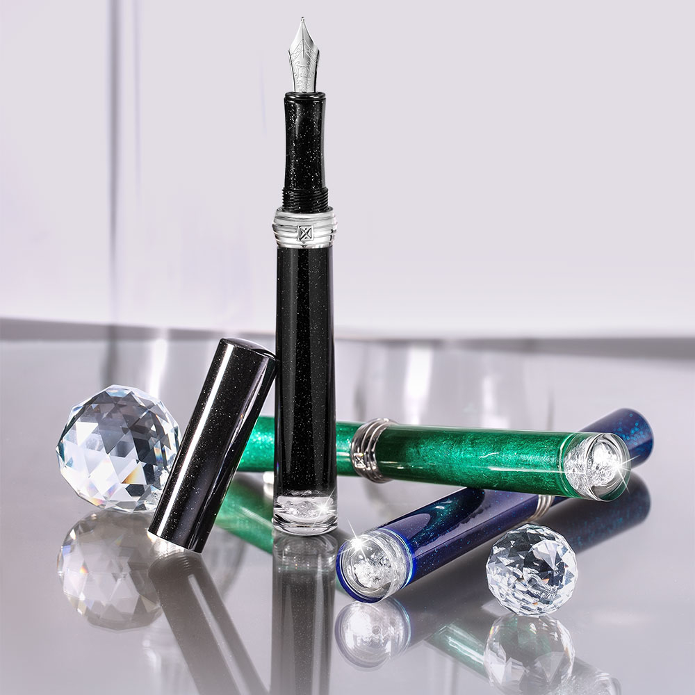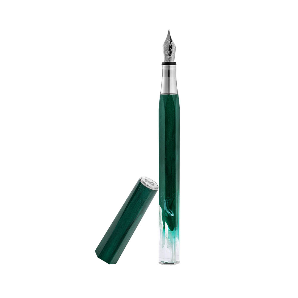 У перьевой ручки Akimov картриджно-конвертерная система заправки. Перо золотое (проба 750) #5, производство Schmidt. Стакан перьевого узла и пластиковый фидер стандартные.