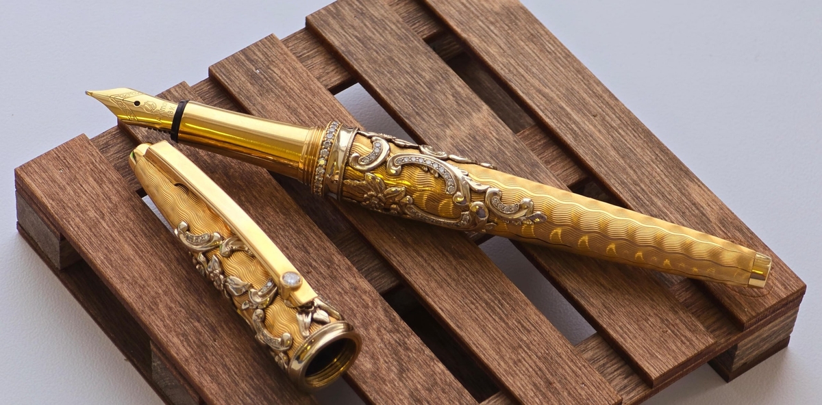 В сегодняшнем обзоре — немного эксклюзива: золотая перьевая ручка Akimov авторства российского ювелира Сергея Акимова, выпущенная в единственном экземпляре.