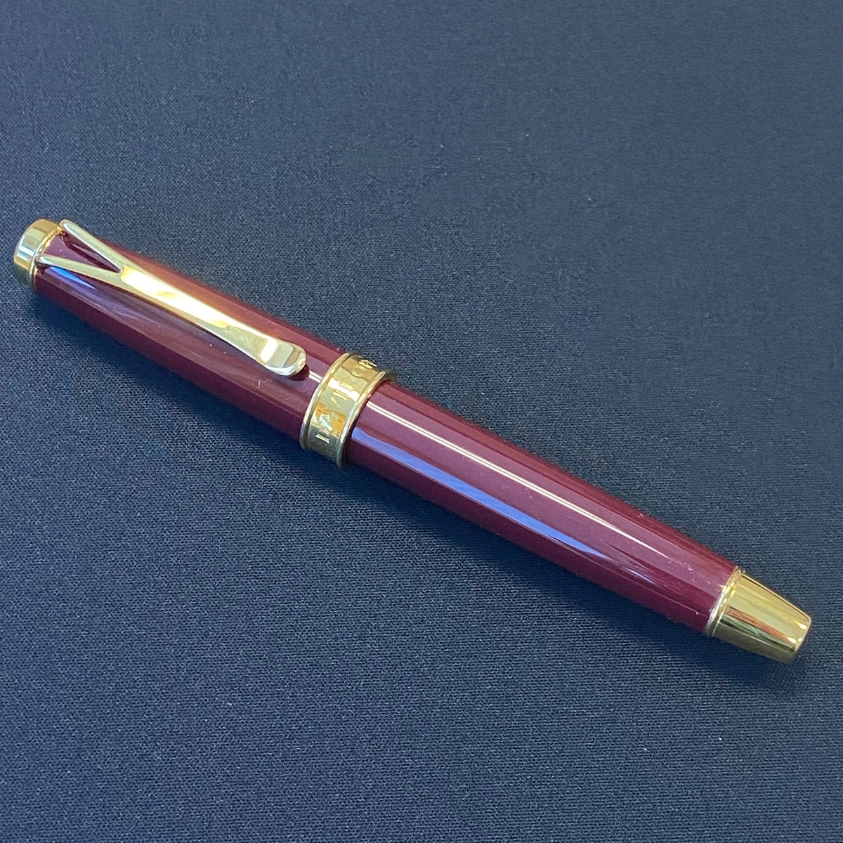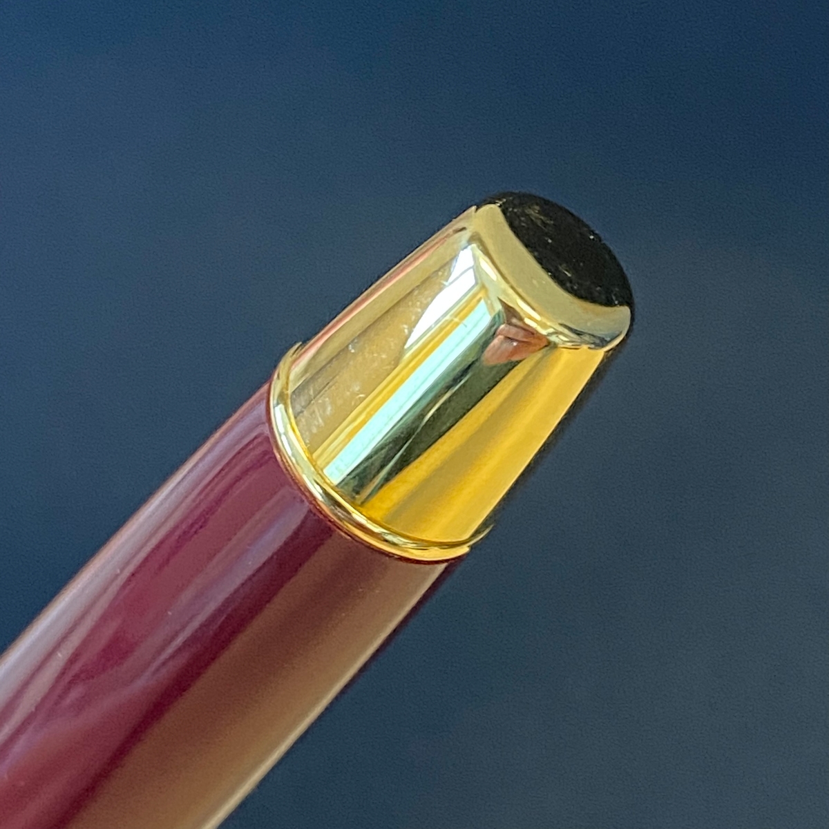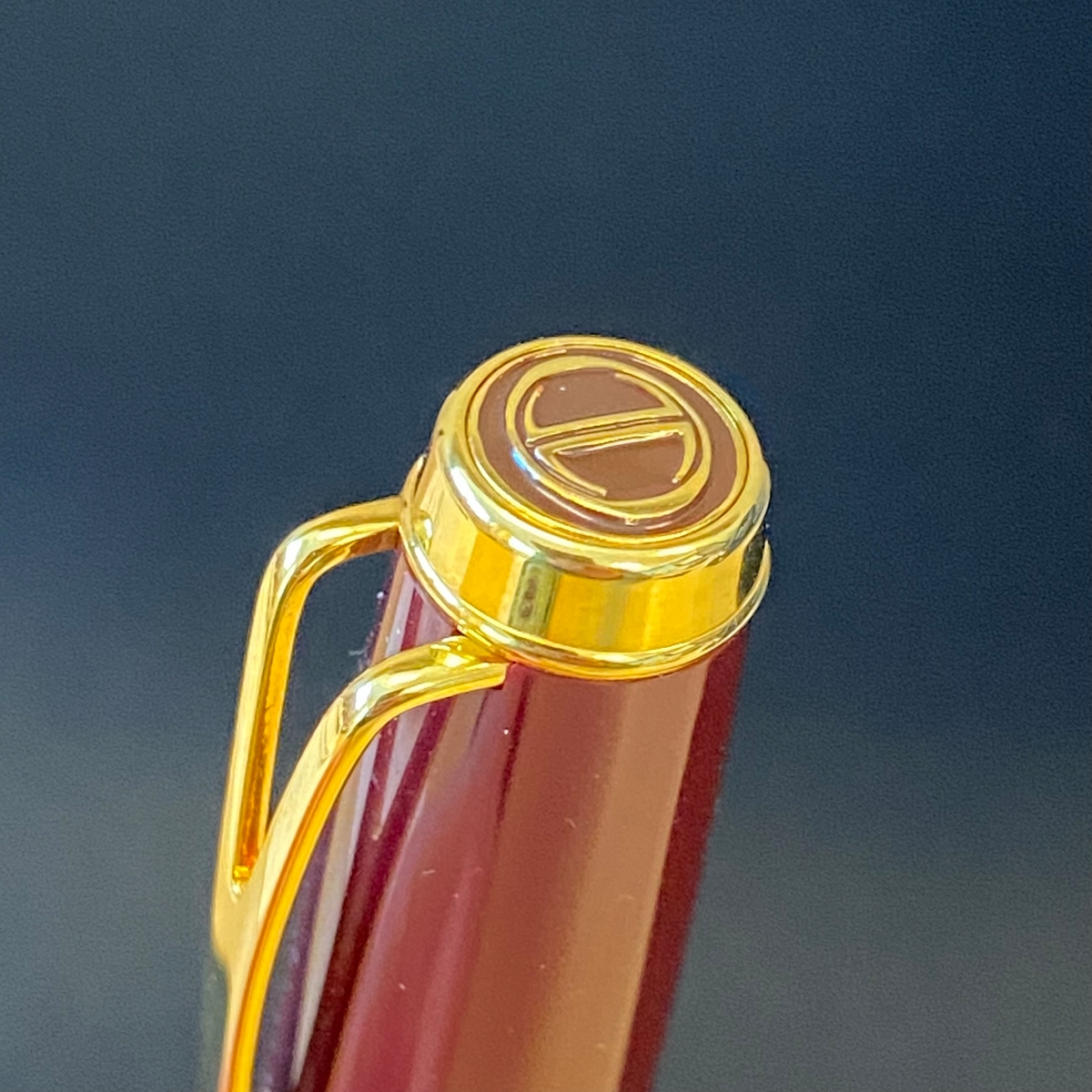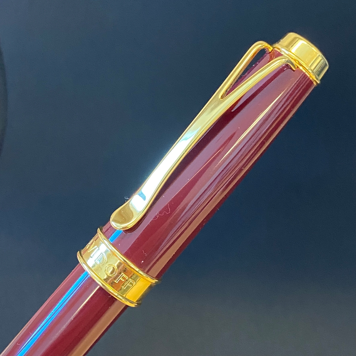 Корпус ручки сделан из металла. Он благородного бордового цвета и покрыт лаком, отпечатки пальцев почти не собирает. Грип-секция же и фурнитура золотистые, и тут со следами дела обстоят похуже: приходилось постоянно их вытирать перед съёмкой.