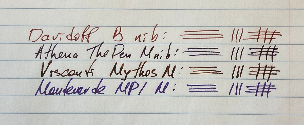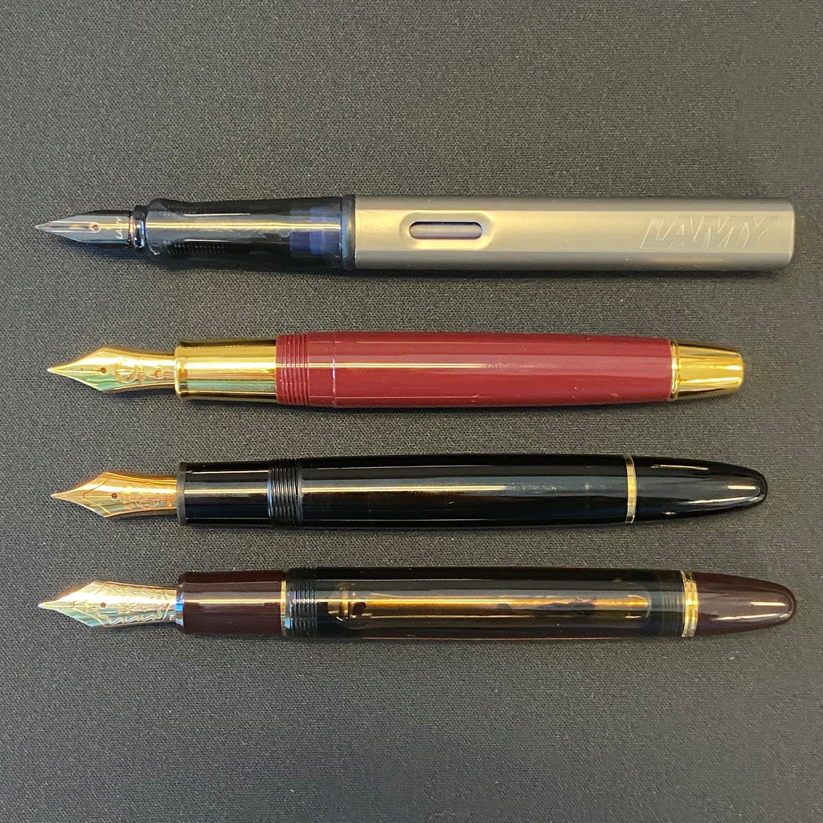 Это перо меня удивило! Пишет невероятно гладко, есть небольшой приятный фидбэк, но не такой сильный, как обычно принято у Sailor. Обратной стороной — гладко, тонко и сухо.