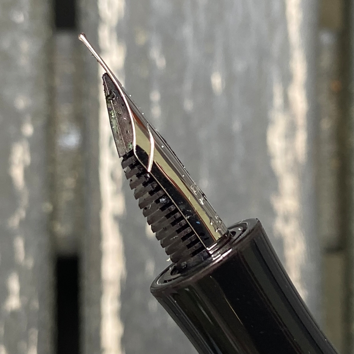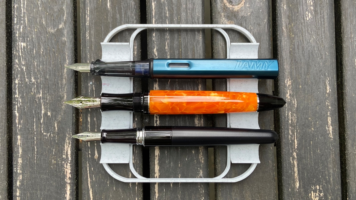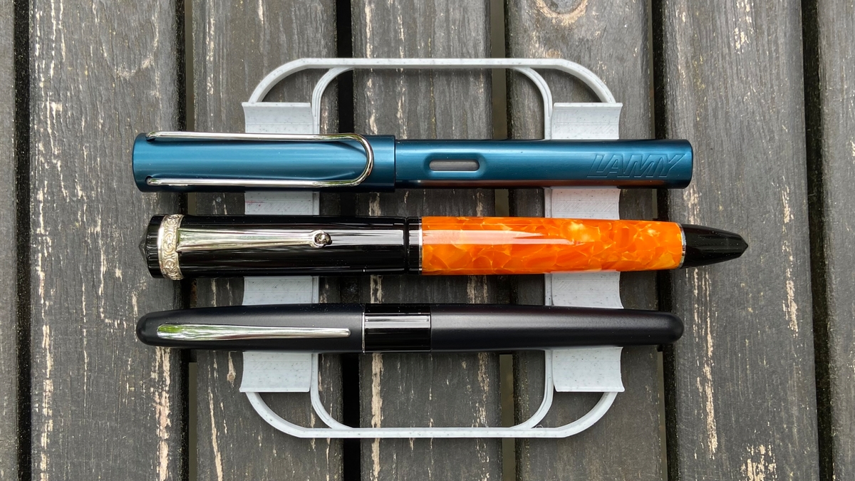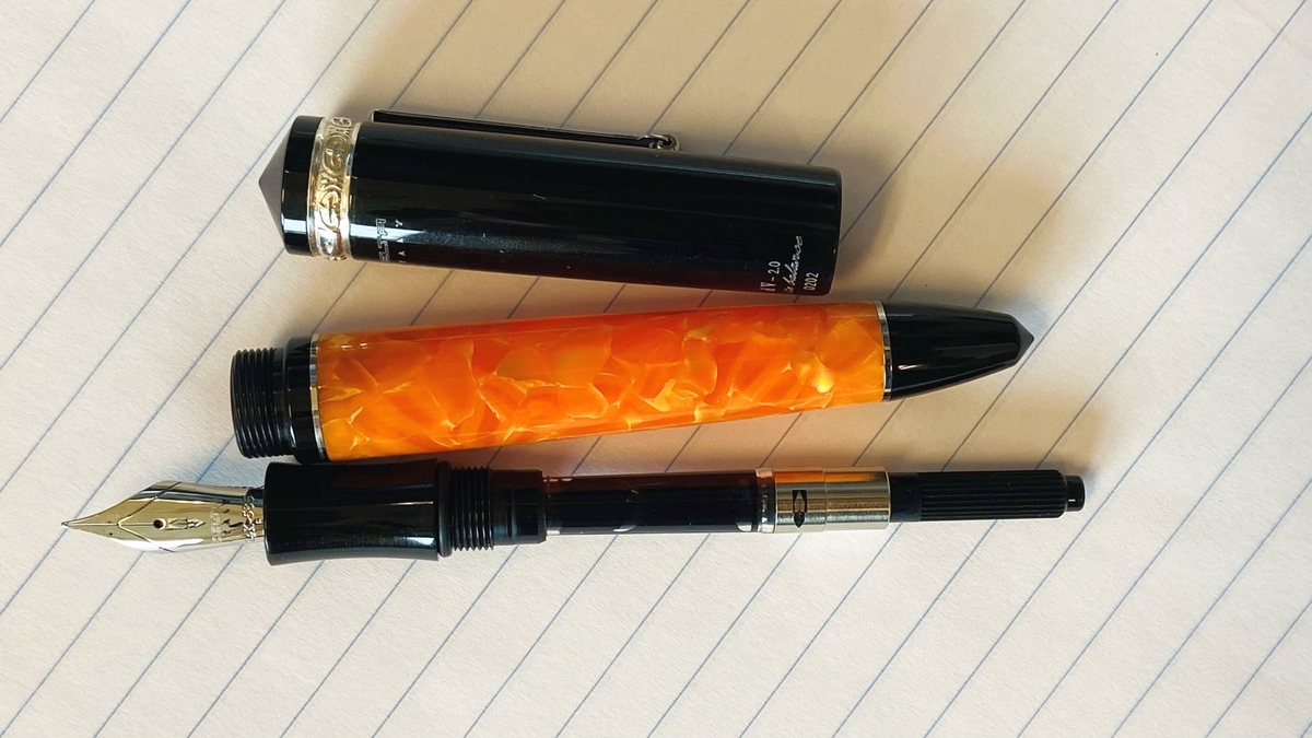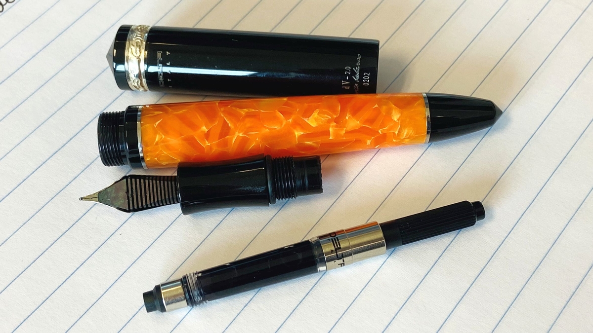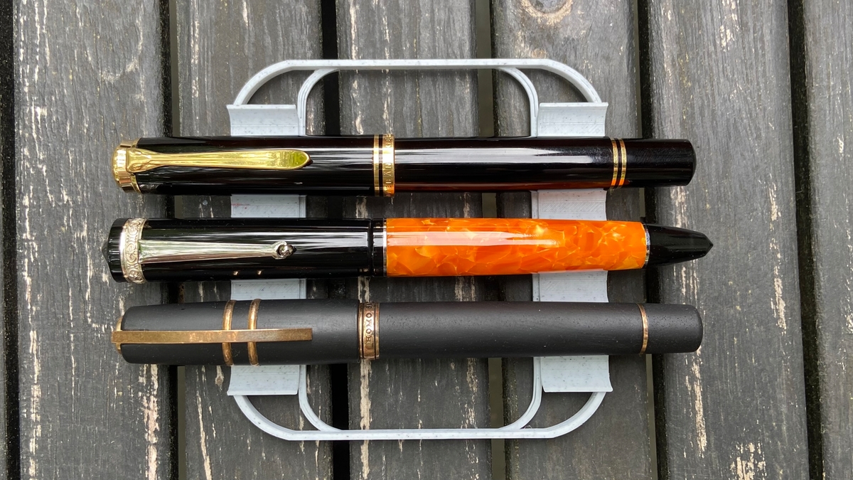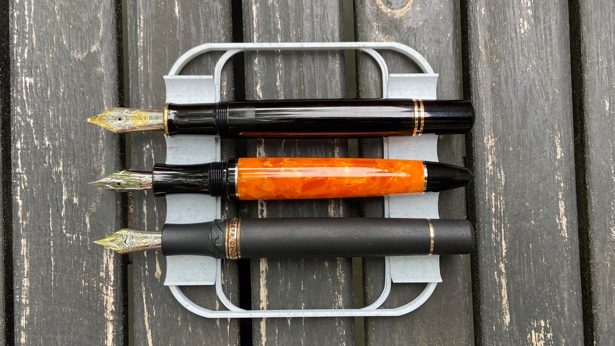 Затем сопоставил с нетривиальными Pelikan M1000 (сверху) и Visconti Homo Sapiens (снизу; тоже, к слову, итальянка).