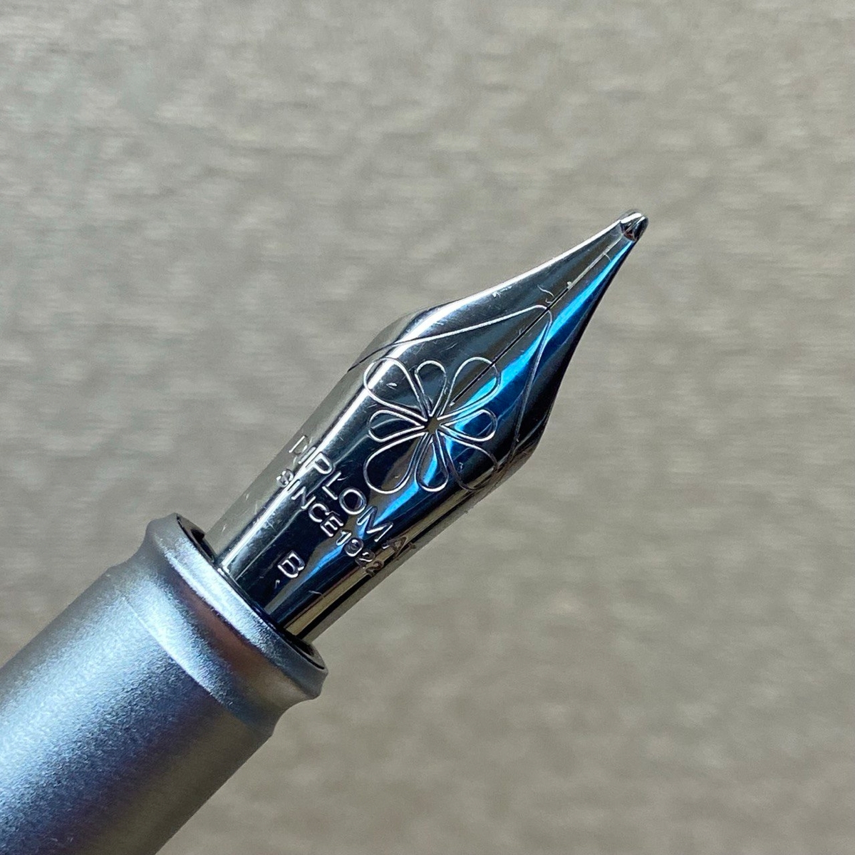 Перо тут стальное, но есть подобные Diplomat’ы и с золотыми (18 карат или 585 проба). Умеренно большое — #6.