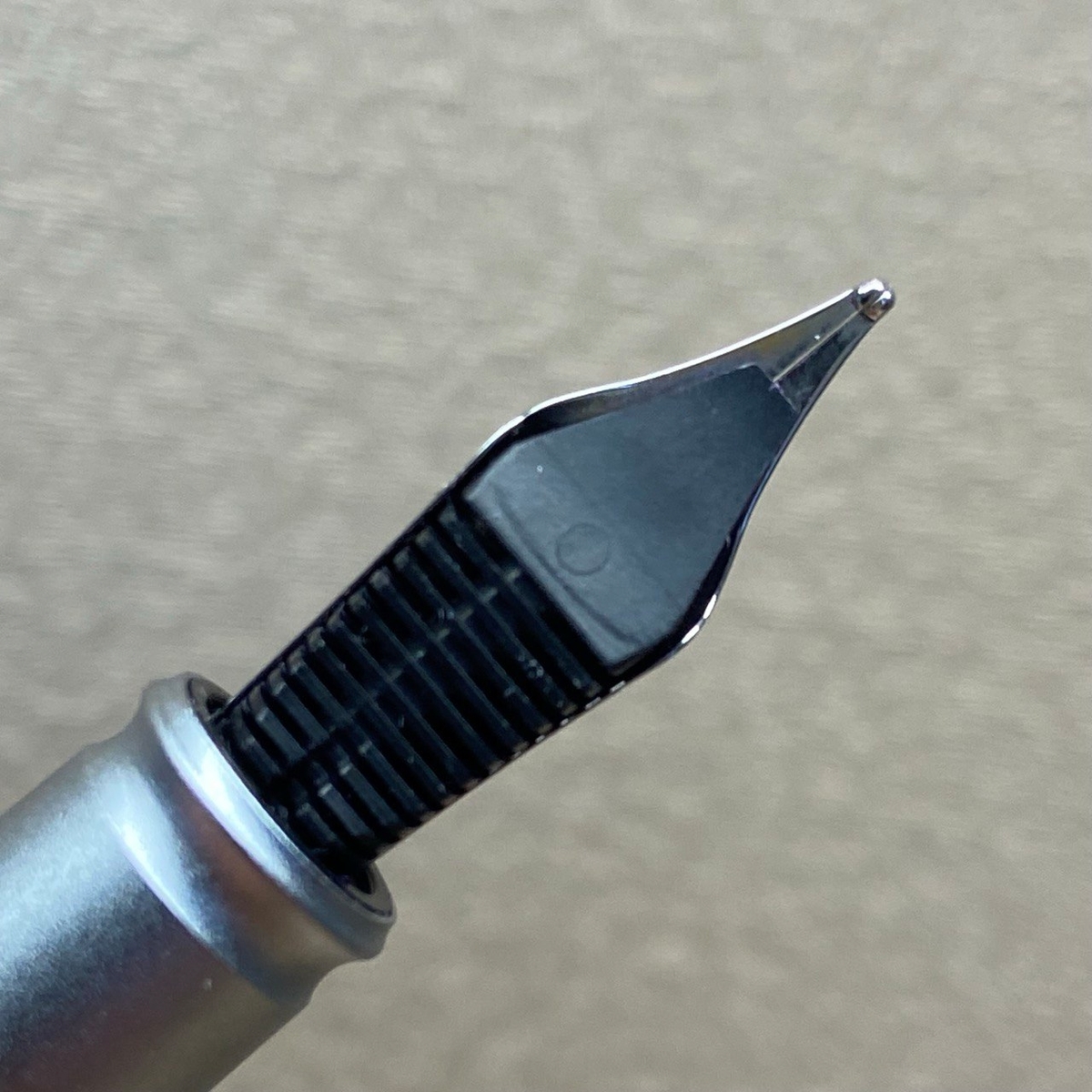 Как и обещал, снова затрону тему грип-секции. Она оказалась очень скользкой для моих пальцев… Чтобы они не сползали и ручка не вываливалась из хвата, приходится сжимать её сильнее положенного, из-за чего теряется та самая лёгкость (бытия) письма пером.