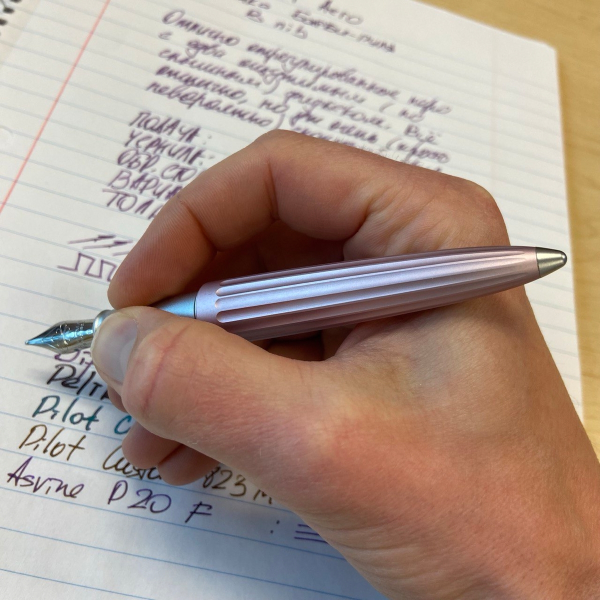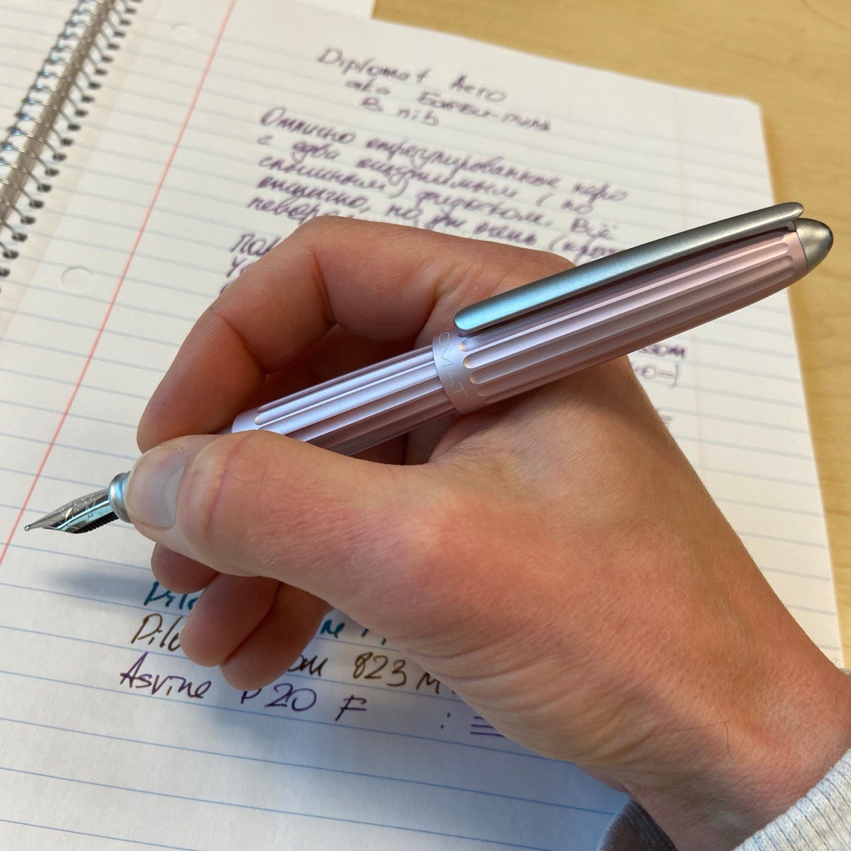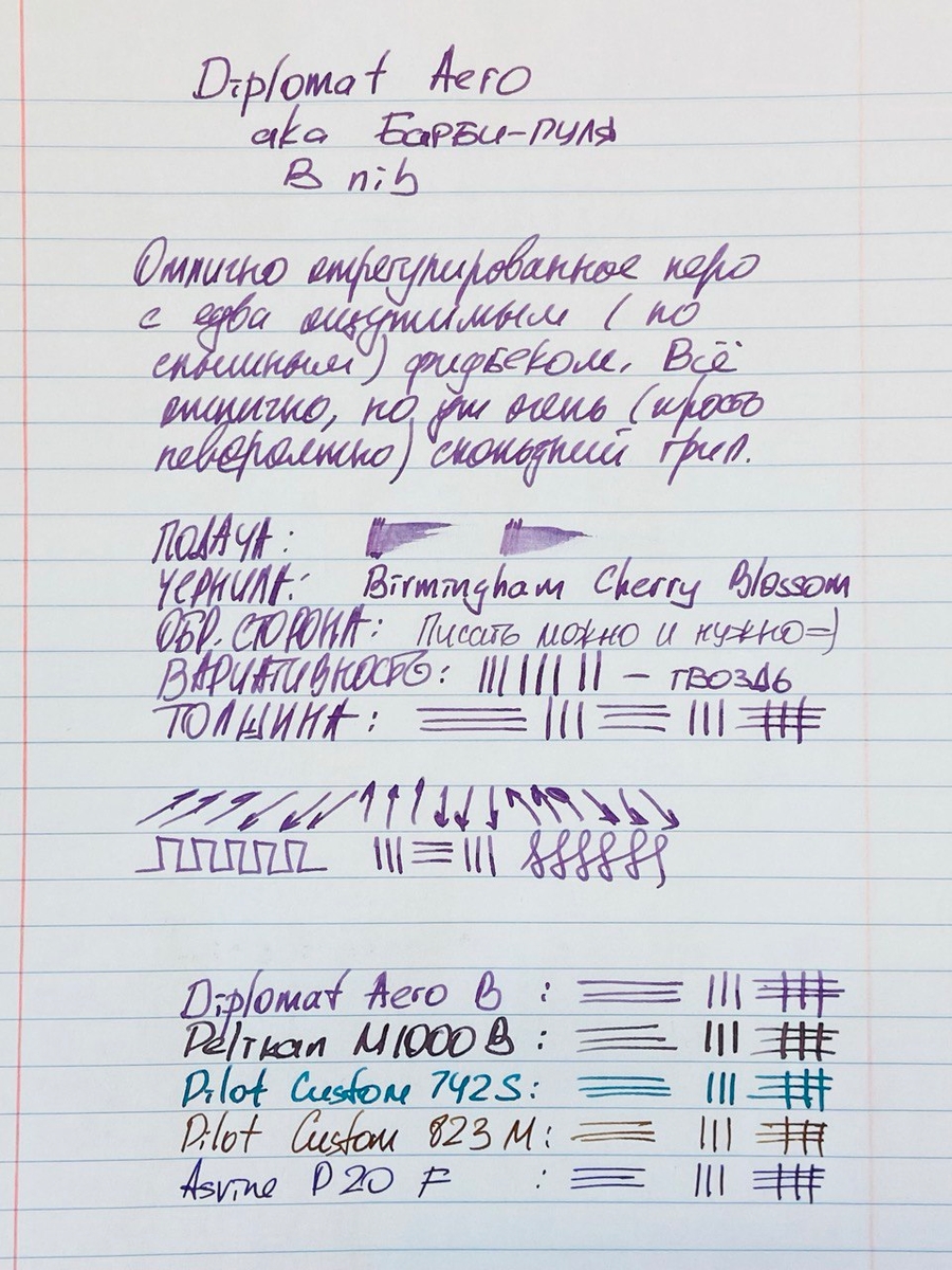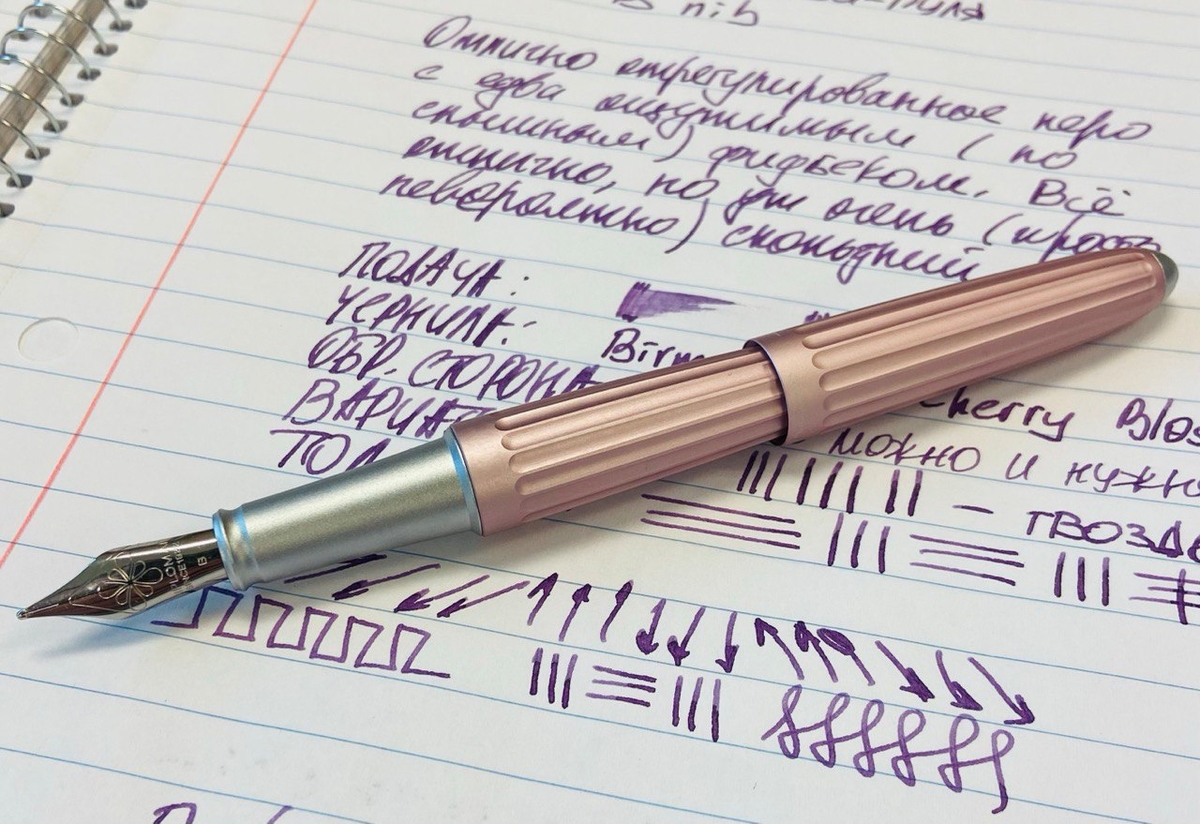 А как раскрылись чернила благодаря перу Diplomat Aero! Мои относительно блёклые Birmingham Cherry Blossom проявили себя во всей красе, заметен даже шейдинг — неравномерное распределение цвета.