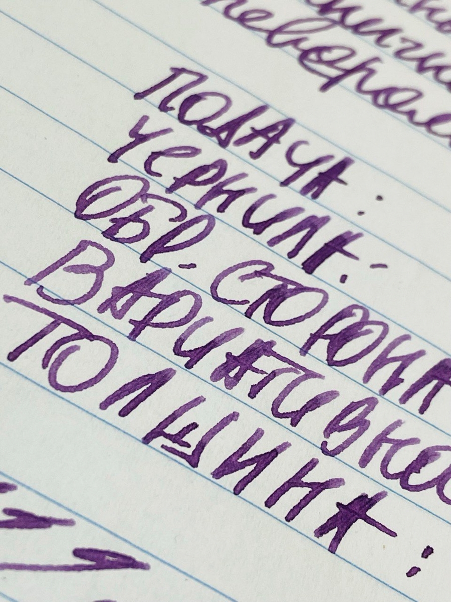 Что касается толщины линии, то она сравнима с таковой от другого пера B (у меня оно на Pelikan M1000, но там ещё более «влажное»: чернила из него текут рекой, поэтому линия получается чуть толще).