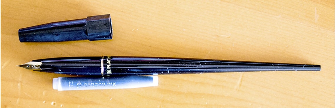 Дело в том, что три года назад, в эпоху увлечения супертонкими перьями, у меня появилась странненькая Platinum Carbon Desk Fountain Pen, Super Fine (DP-800S#1), позиционируемая как ручка для рисования/дудлинга/скетчинга.