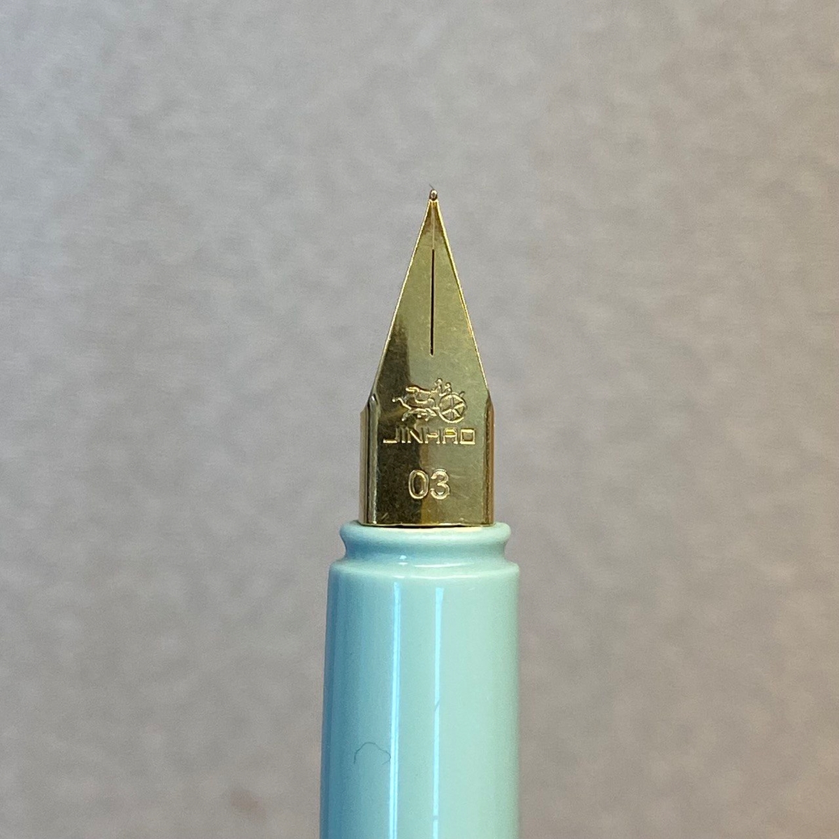 В руке Jinhao 1001 лежит хорошо: грип удобен для любого хвата, резьба не острая. Сужение к концу инструмента никак не мешает, обусловлено это плавностью перехода.