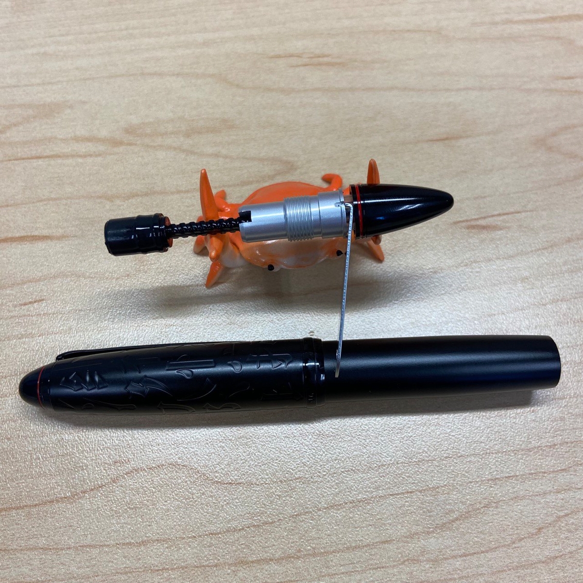 Вытаскивать его из инструмента я не стал, ибо делается это, судя по откликам в интернете, непросто. Ещё помню (но это не точно), что перья у HongDian чуть короче других, поэтому при установке более длинного кончик может упираться в колпачок при закручивании.