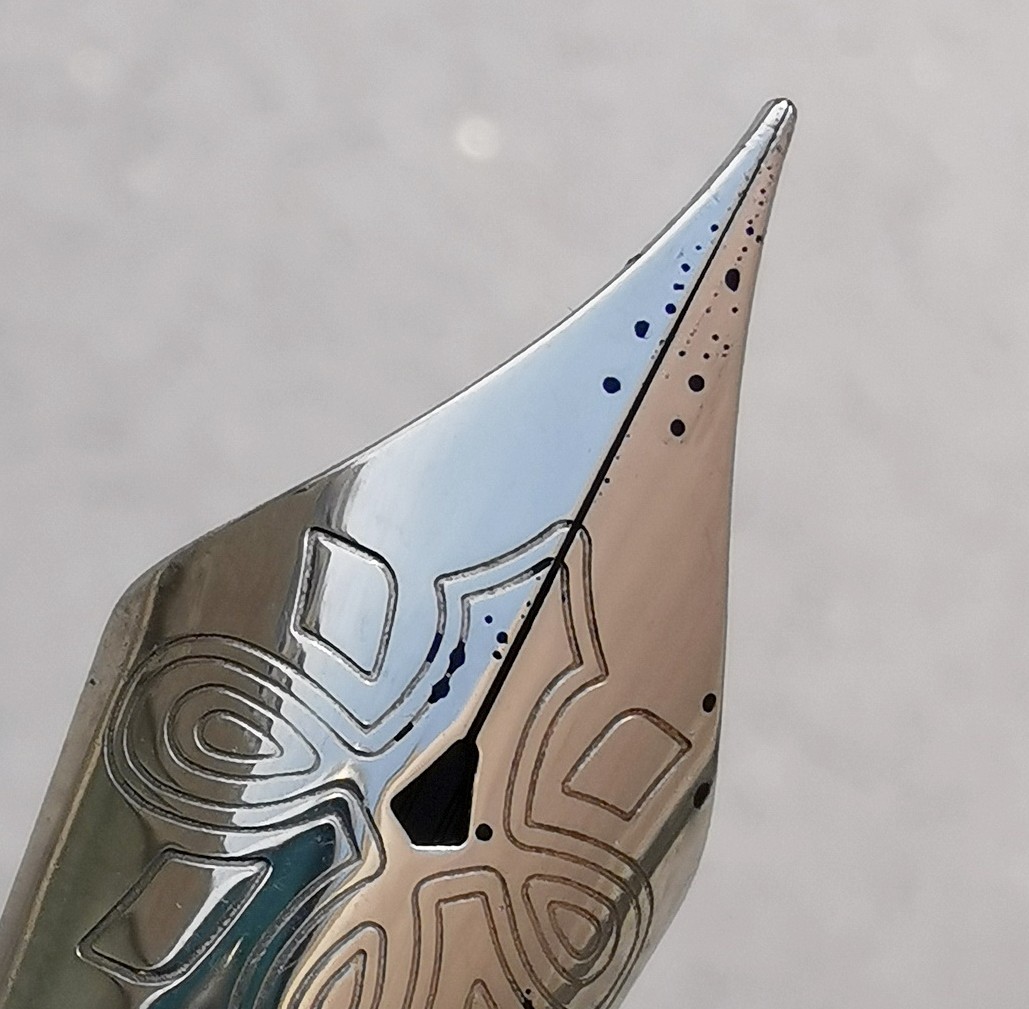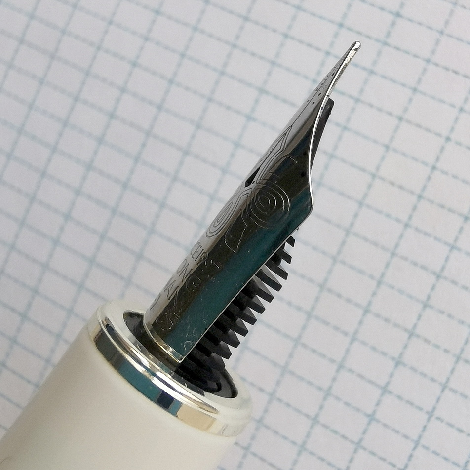 Вообще, буду активно хвалить это перо! Линия — честная японская EF, подача ближе к обильной, поэтому пишет ручка тонко и насыщенно — способна раскрыть и не слишком выразительные чернила, я думаю. Оно может на равных потягаться со стальными японцами!