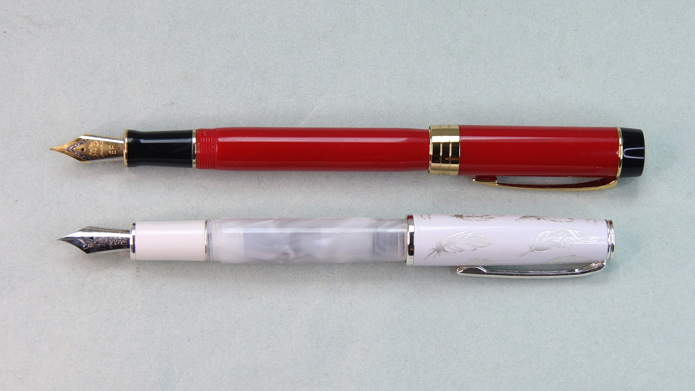 Разница заметна при надетых на торцы колпачках (выше пояснял, почему так), хотя корпуса у ручек практически одной длины: