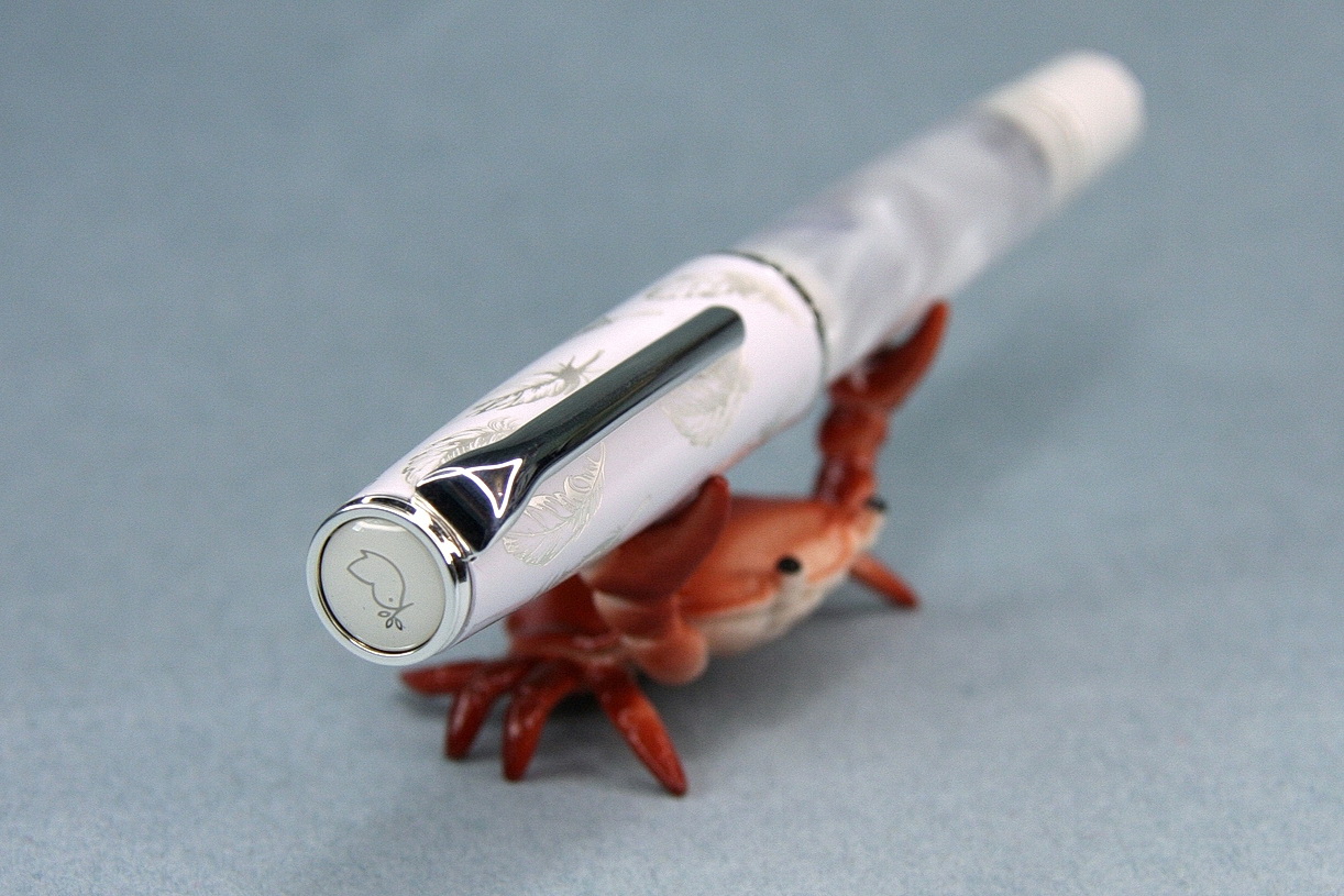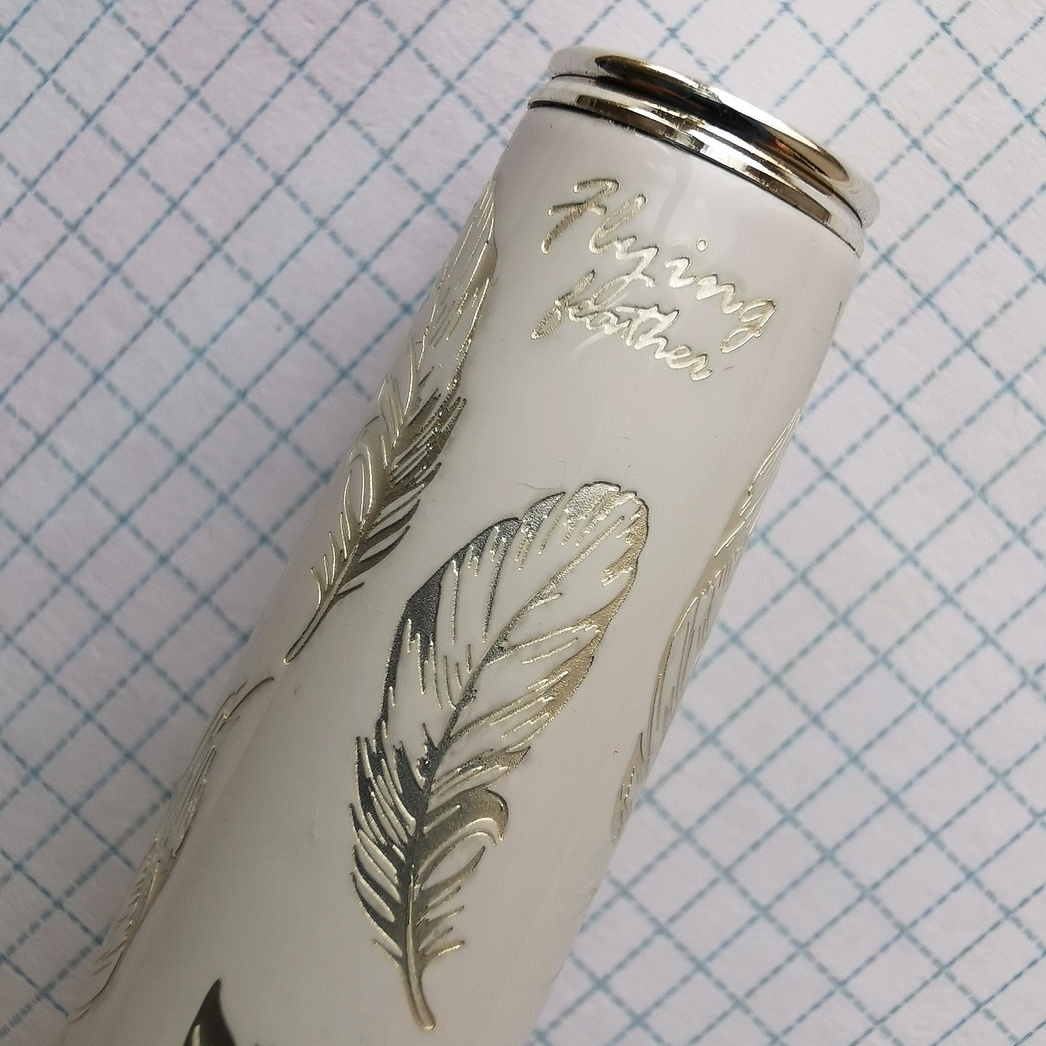 Считаю, что о колпачке этой ручки стоит поговорить подробнее! Во-первых, на нём, помимо перьев, есть надпись Flying feather: