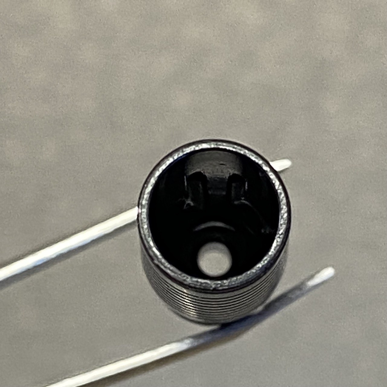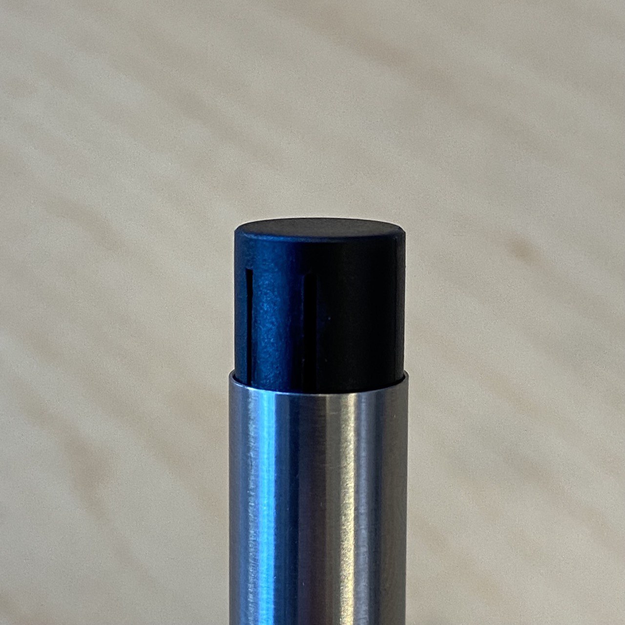 На конце барреля есть пластиковое навершие с четырьмя симметрично расположенными тонкими прямоугольными прорезями. Именно оно, как по мне, создаёт эффект простоты, о котором я упоминал выше.