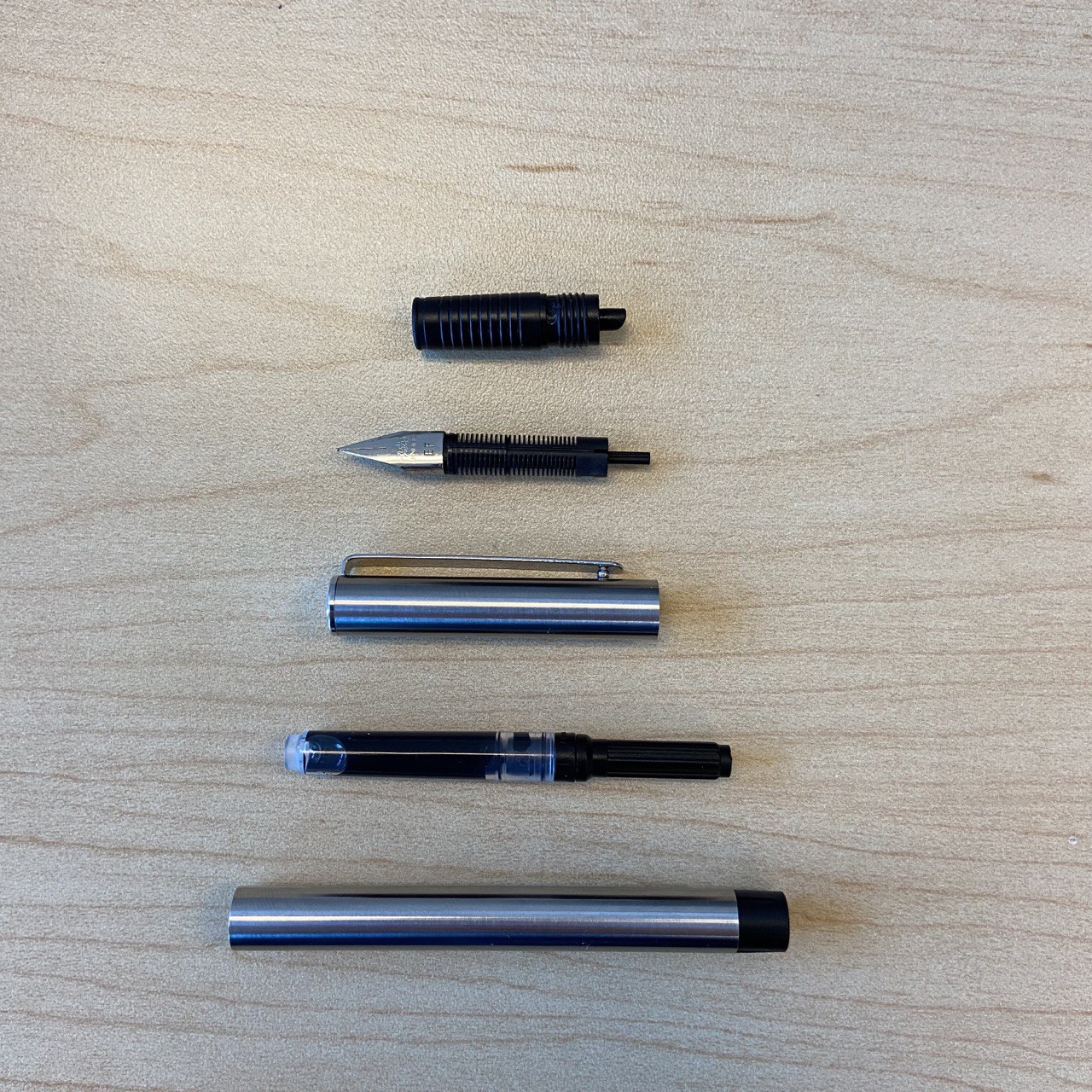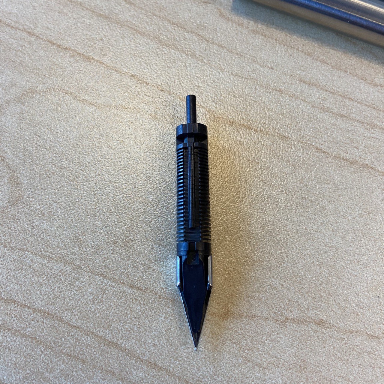 Довольно легко разбирается. Единственное, что мне не удалось сделать, — снять перо: очень уж плотно сидит. Решил не усердствовать, тем более инструмент пишет, необходимости в доводке нет.
