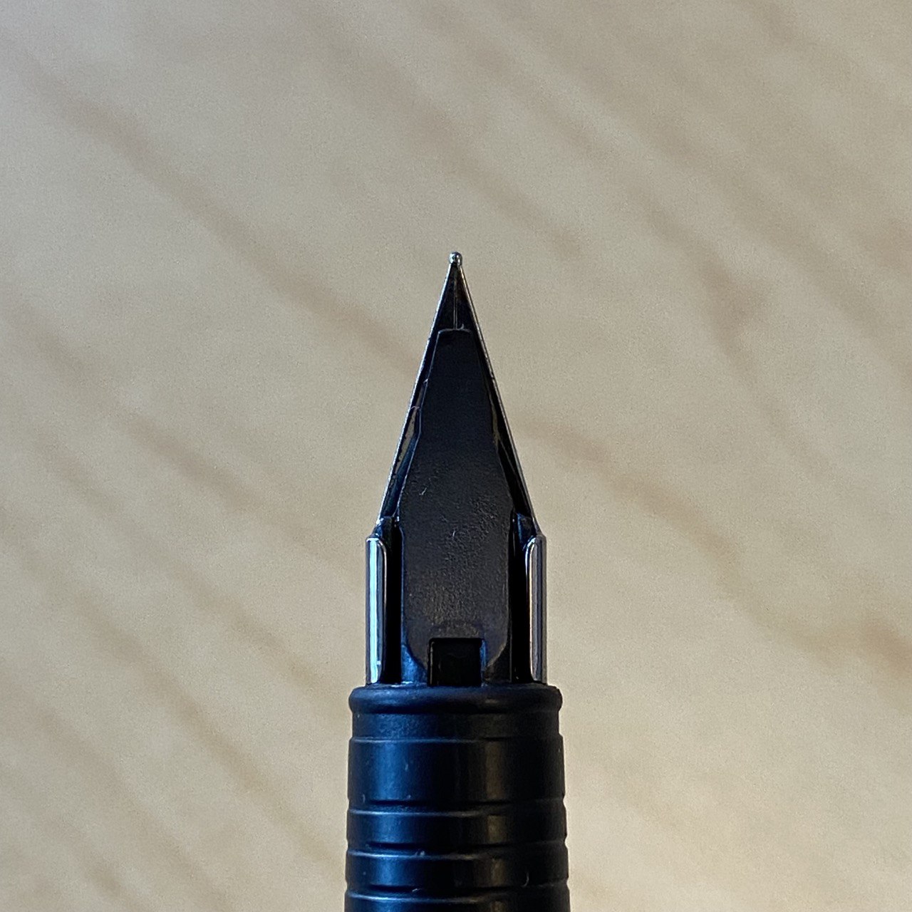 Ступенька между грипом и корпусом очень маленькая, пальцами не ощущается и письму не мешает. Единственное замечание — на стальной версии она чуть более острая, чем на чёрной (чтобы понять это, нужно специально с нажатием провести пальцами).