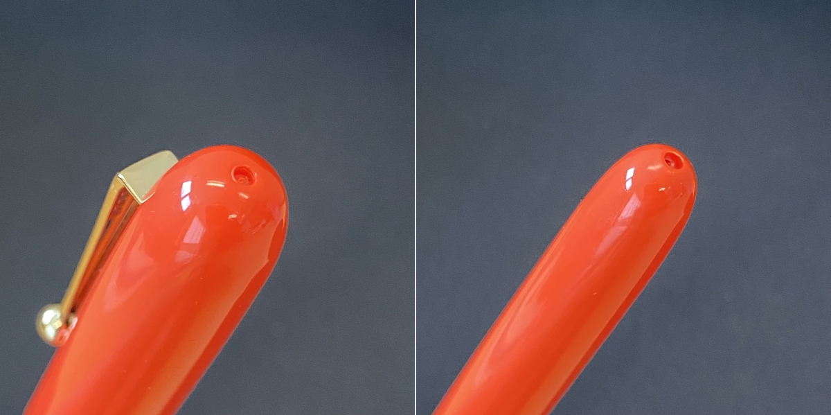 Фурнитура золотистого цвета. Клип весьма оригинальный — с шариком на конце и названием бренда Jinhao у основания.