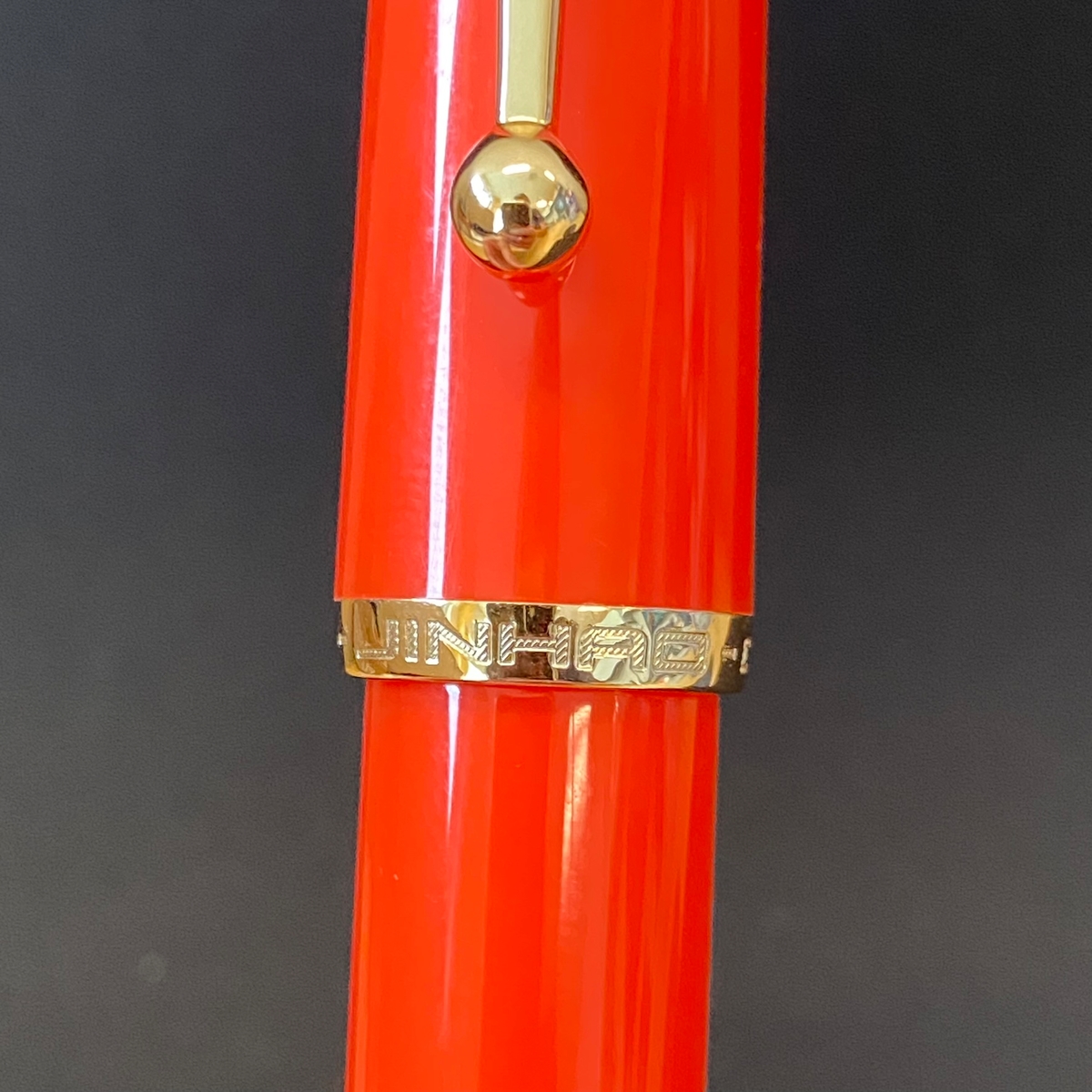 Фурнитура золотистого цвета. Клип весьма оригинальный — с шариком на конце и названием бренда Jinhao у основания.