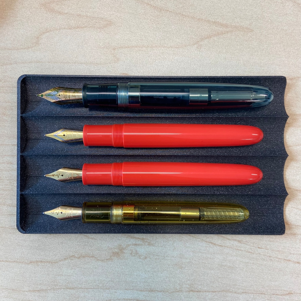 Мне кажется, у Jinhao отлично вышло «скукожить» 9019-ю до более миниатюрных версий без потери гармонии пропорций. И хорошо, что на самой младшей 9013-й решили оставить перо шестого размера, маленькое там бы смотрелось хуже.