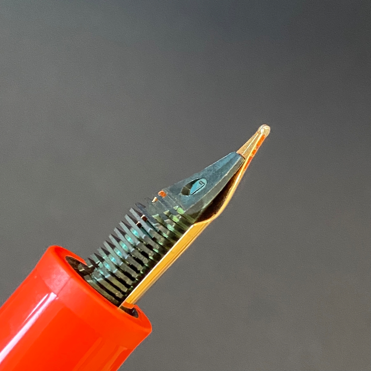 Самое интересное в Jinhao Dadao 9016 — это, конечно же, перо. Во-первых, оно шестого размера и стальное. Во-вторых — с необычной прорезью в виде кардиограммы.