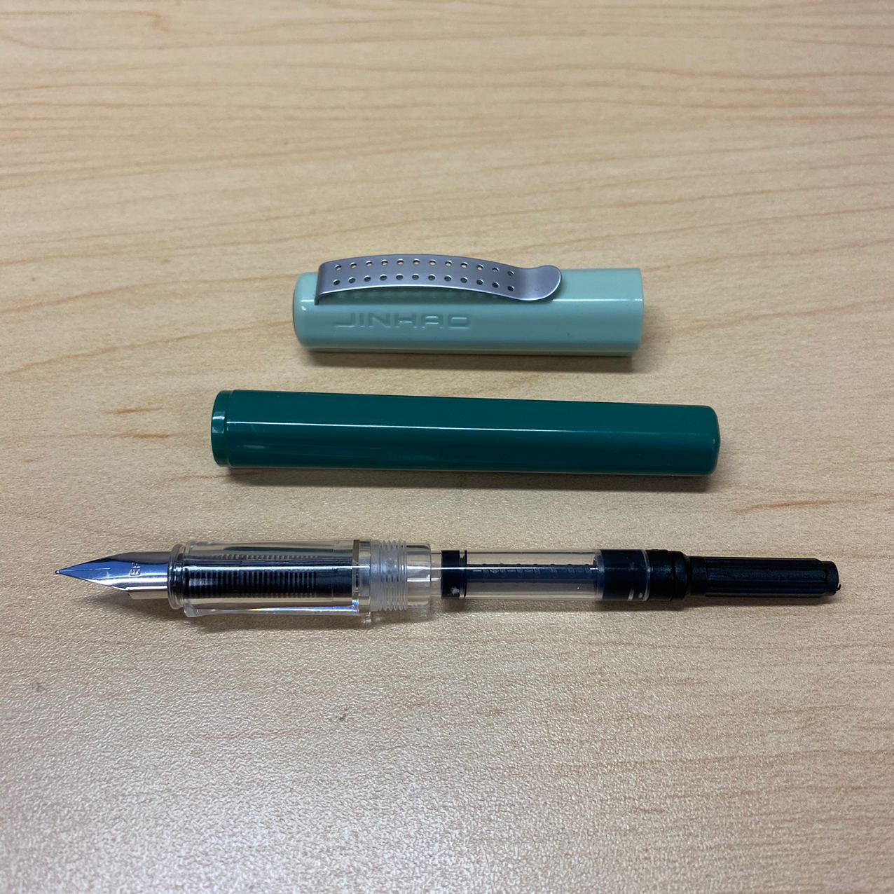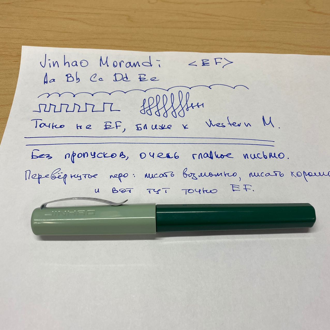 В руке Jinhao Morandi лежит хорошо: как уже сообщал выше, скруглённый треугольный грип этому явно способствует. Комфортно писать как с колпачком, надетым на торец (на баланс не влияет, на барреле сидит очень плотно), так и без него.