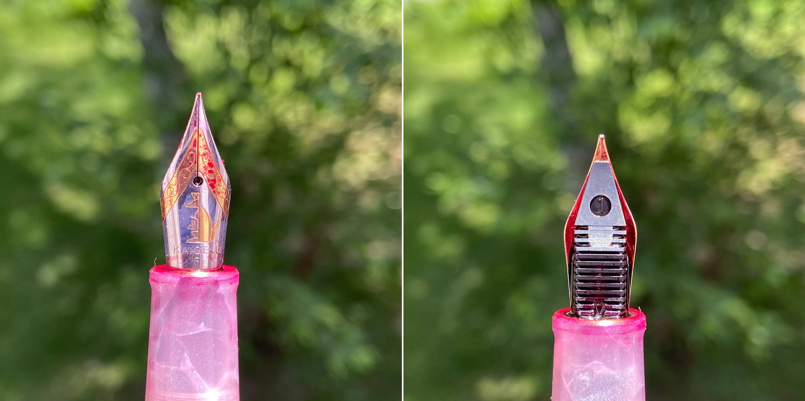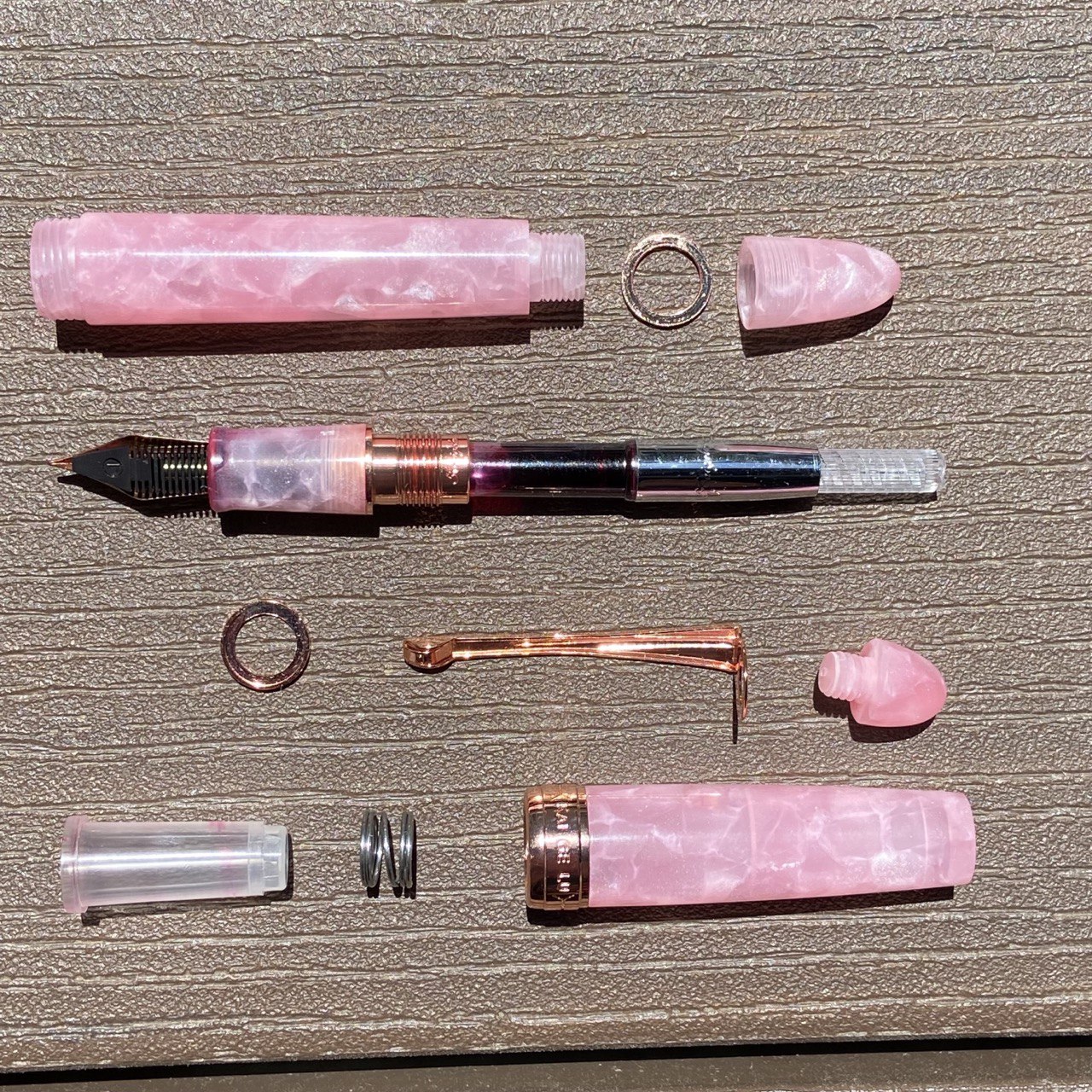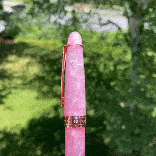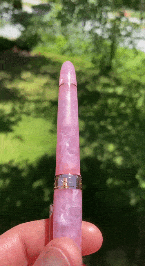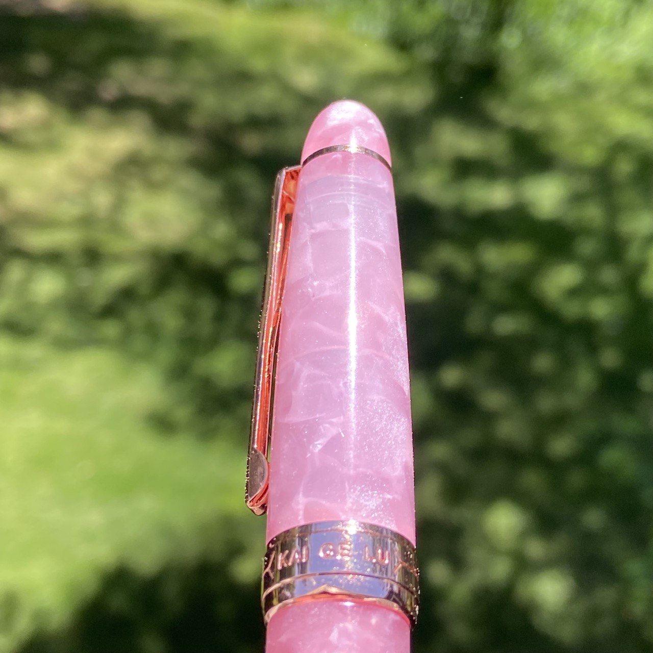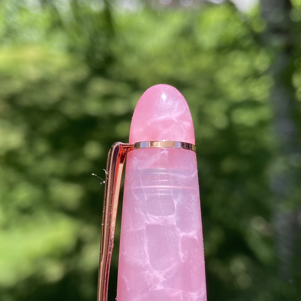Втулка, которая соединяет баррель и грип-секцию, сделана из того же розового материала, что и элементы отделки ручки. Снова внимание к деталям — мне это нравится. Втулка тоже брендирована, на неё нанесено название модели (сначала я по привычке искал его на кольце колпачка).