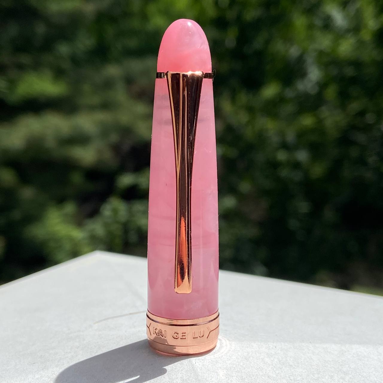 Что по колпачку? В плане дизайна всё классически: узкое кольцо сверху и широкое у основания, где нанесено имя бренда в три слога — KAI GE LU. Количество оборотов — один с четвертью.