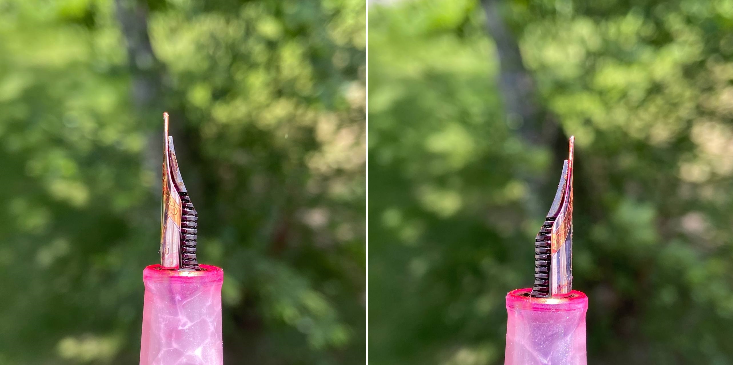 Никаких пропусков и хардстартов за почти месяц эксплуатации обнаружено не было. Перо жёсткое, не ждите от него вариативности линии. Поднажать, конечно, можно и выдавить тем самым М, но оно вам надо?