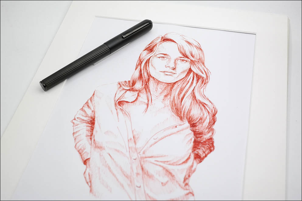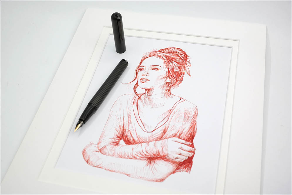 На фотографии эта ручка мне не очень нравилась: во-первых, не люблю крашеные поверхности (включая PVD), во-вторых, думал, что вес будет избыточным, а конусовидная секция неудобной. Но во время теста я не испытал никакого дискомфорта! Более того, эргономика очень приятная, рука абсолютно не уставала. Обратная связь от пера тоже хороша.