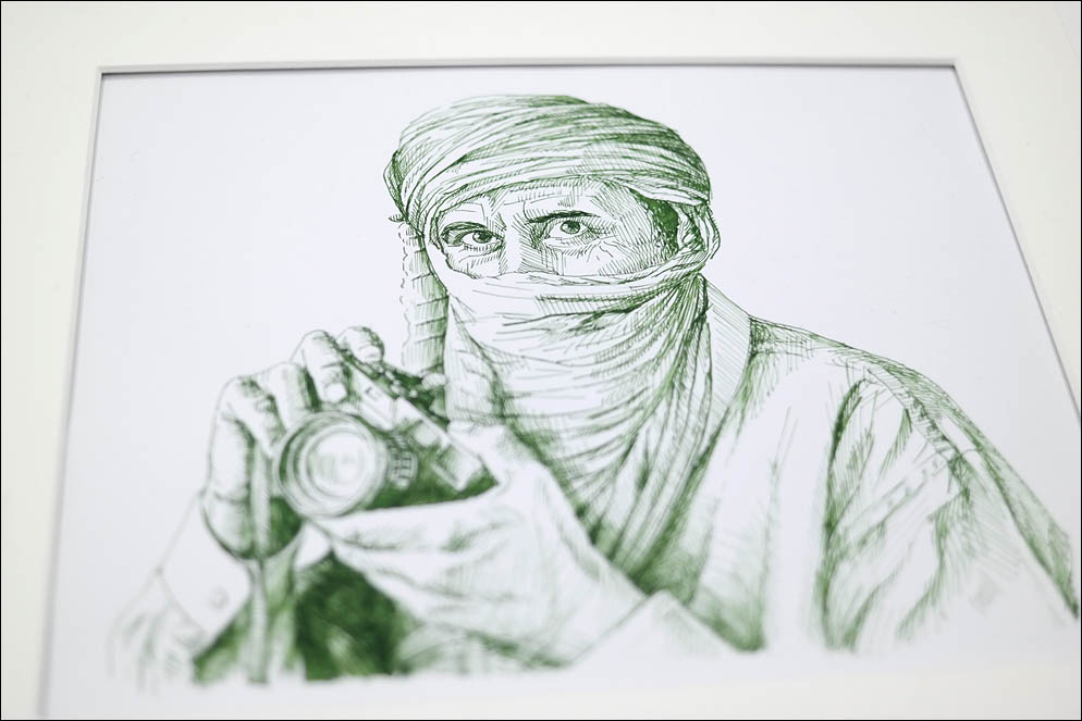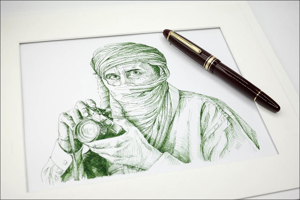И в заключение — эскиз отдельно. Это Аббас Аттар — французский фотограф и фотожурналист иранского происхождения, член всемирно известного агентства Magnum Photos.