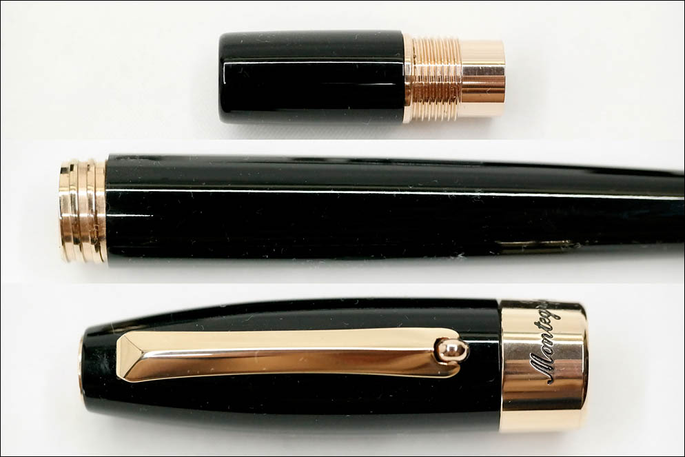 Все металлические акценты, включая втулку секции и перо, покрыты розовым золотом. Клип имеет традиционное окончание в виде колёсика.