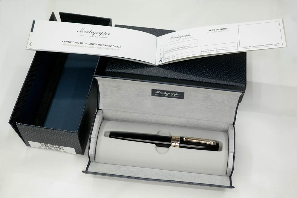 Из элементов брендирования на широком кольце колпачка присутствуют имя бренда Montegrappa курсивом и фирменный логотип в виде медальона на навершии с датой основания компании — 1912 годом.