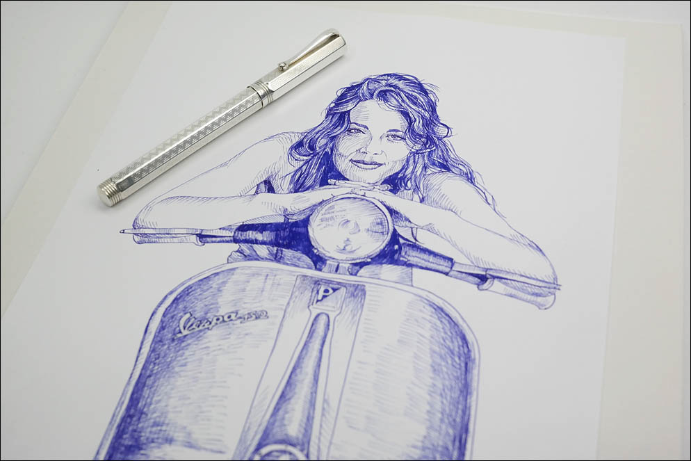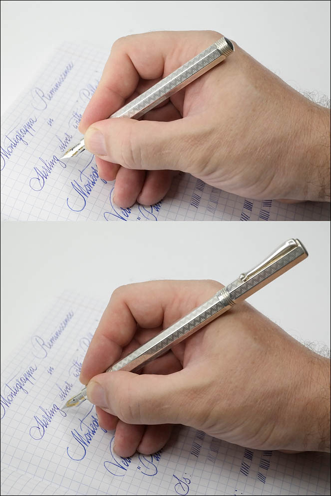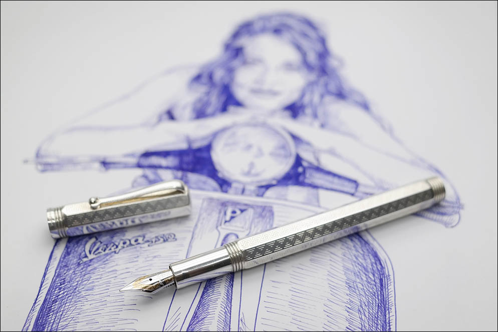 К сожалению, это перо уже не обладает такой манящей мягкостью, как у старшей модели, однако меньшая размерность в сочетании со сбалансированным эбонитовым фидером делают ручку очень приятной в письме и рисунке.